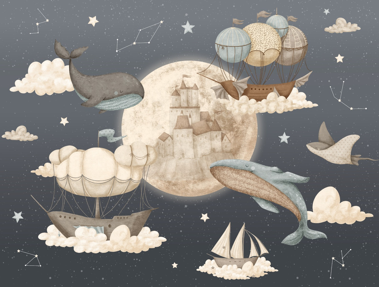 Whale Sky Dreams Celestial Voyage Mural