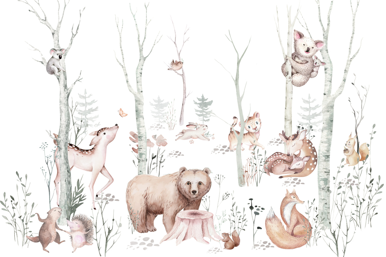 The black and White Colour Forest Animals Wallpaper is dramatic and interesting because it has a lot of contrast. This strong mix will make a statement in any room, from a modern living room to a fun kids' room.