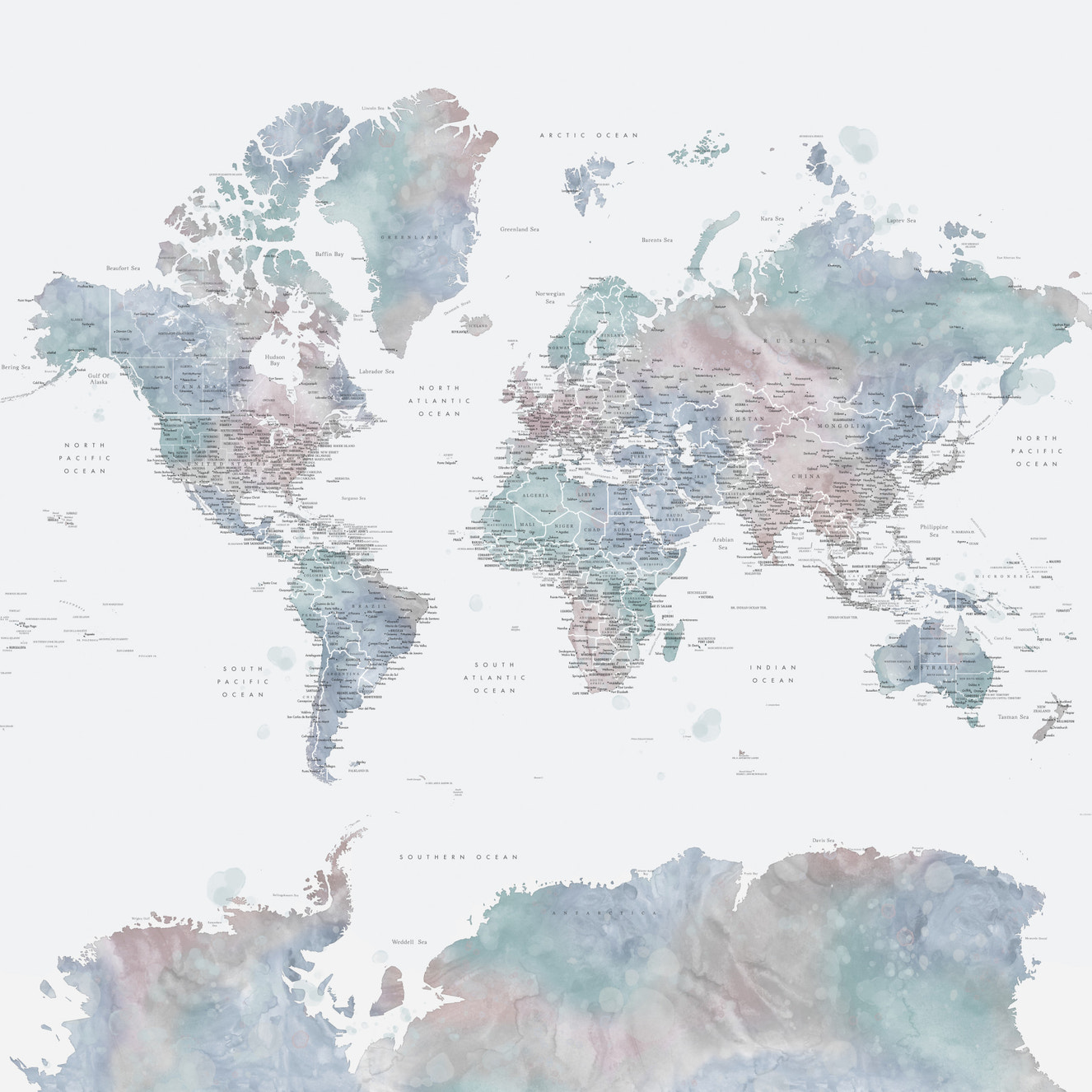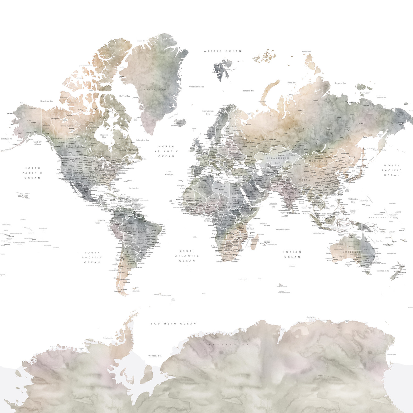 Our earth map wallpaper is available in various high-quality materials, including traditional non-woven paper and modern peel-and-stick vinyl. Each material offers a different finish and is selected for its durability and print clarity.