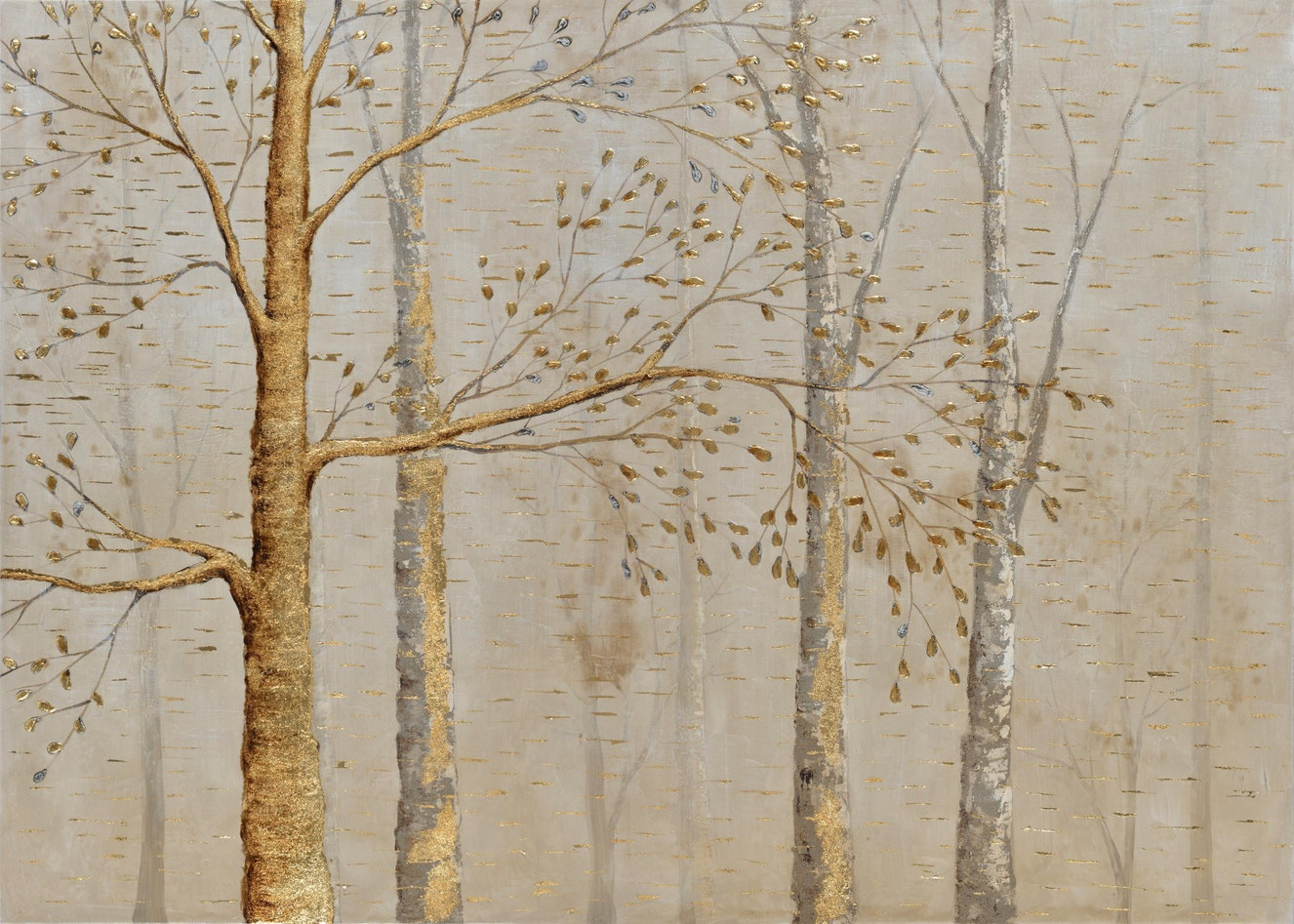 Gold wallpaper can be combined with matte textures and neutral-toned furniture. Use it for one wall at a time and not the whole room for a chic, well-proportioned appearance.