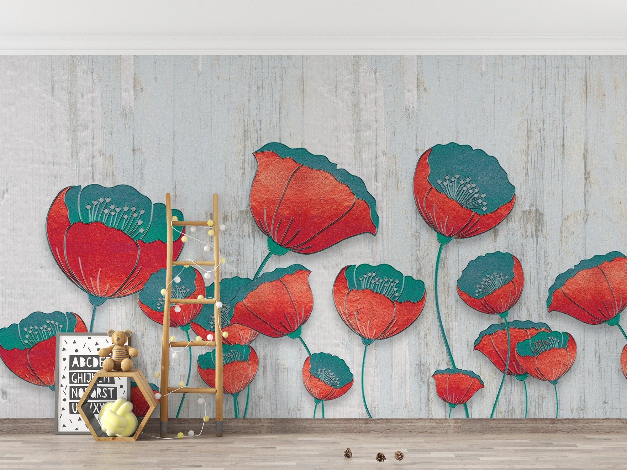 Vibrant 3D Red Floral Mural