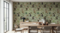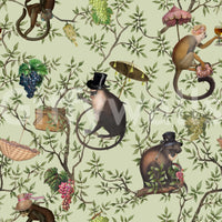 Escape to a world of refined elegance with 'A Primate's Afternoon Tea,' a unique wallpaper design showcasing stylish monkeys enjoying a delightful tea party amidst a picturesque garden setting. The delicate watercolour style brings a touch of vintage charm, with the pastel green background complementing the rich details of the monkeys' attire and the lush greenery. This wallpaper seamlessly blends playful animal motifs with sophisticated decor, creating an ambience that is both whimsical and refined. Ideal for adding a touch of personality to any living space, this design brings an air of sophistication and lightheartedness to any room.
