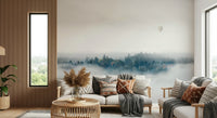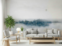 Embrace tranquility with this serene landscape. A misty forest reveals a peek of autumnal foliage and a lonely hot air balloon floats in a sea of white. The simple colour palette with muted tones will create a calming atmosphere. This wallpaper for walls transforms any room into a peaceful retreat. The design is especially suited for living rooms, bedrooms, or office spaces, lending a touch of nature's quiet beauty to your interiors. It provides a serene backdrop that complements both modern and rustic decor styles.