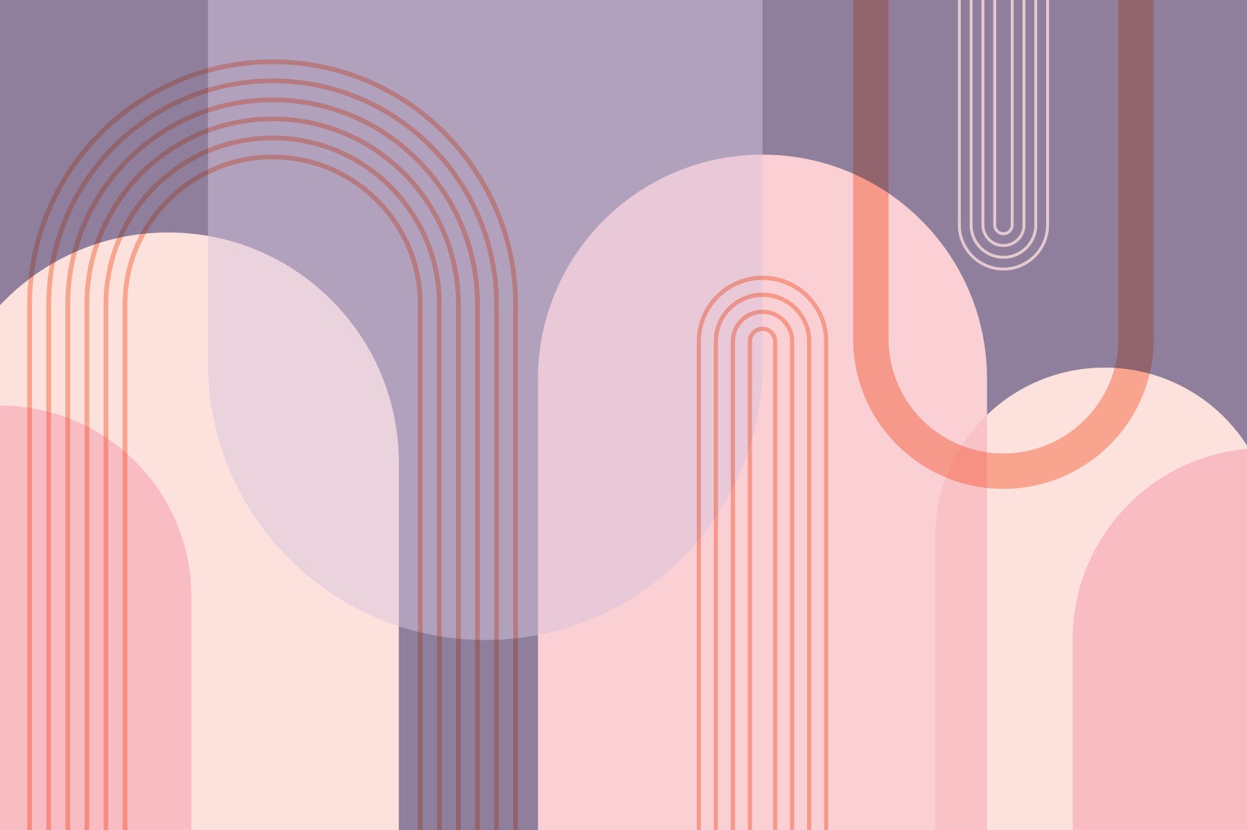 Immerse yourself in a serene world of Abstract Arches in Pink and Purple. This captivating wallpaper features a harmonious blend of soft pinks and purples, forming elegant, overlapping arches and circles. The subtle interplay of muted tones and clean lines creates a calming yet sophisticated aesthetic. Perfect for adding a touch of modern minimalism to any digital device, this design evokes feelings of tranquility and understated elegance. The layered arches and geometric shapes bring a dynamic yet balanced visual rhythm, making it a beautiful and versatile addition to your digital workspace or personal devices.