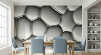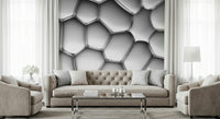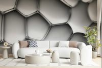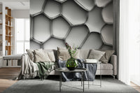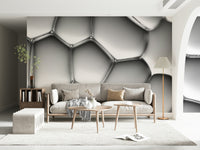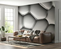 Capture the essence of modern design with this abstract cell structure. The repeating pattern forms geometric shapes. Its grayscale palette makes it blend seamlessly into many design styles. Use this wallpaper for walls to add a unique look to a living room or office. The stark contrast enhances the visual impact and makes rooms appear larger. The overall pattern offers a contemporary, artistic vibe perfect for a feature wall.