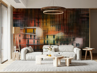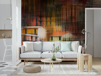 Invite creative energy into your home with this captivating abstract wallpaper. Vertical lines and vibrant colours create a stylish modern scene. Warm hues of orange, yellow, and red play beautifully against the darker tones. This design is perfect for spaces needing a unique touch. Use this wallpaper for walls in a living room, dining area, or hallway to inject personality. The distinctive pattern will draw the eye and easily complements contemporary interiors.