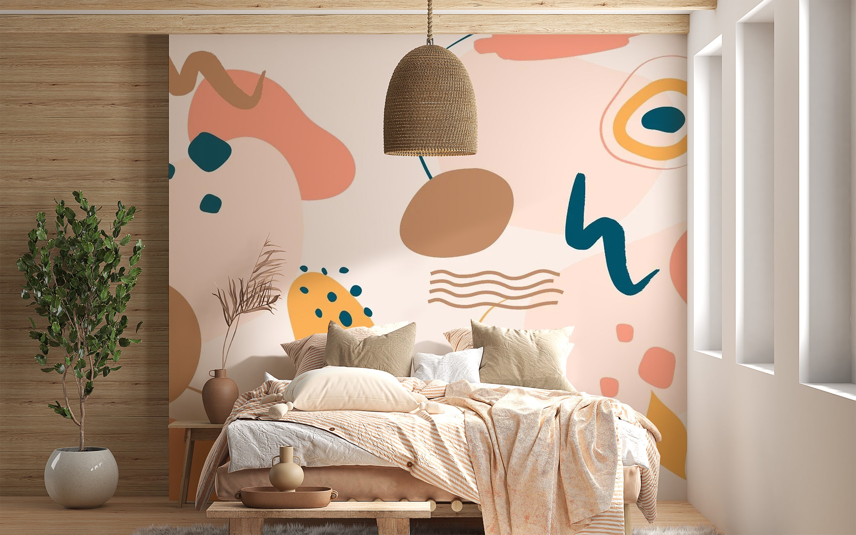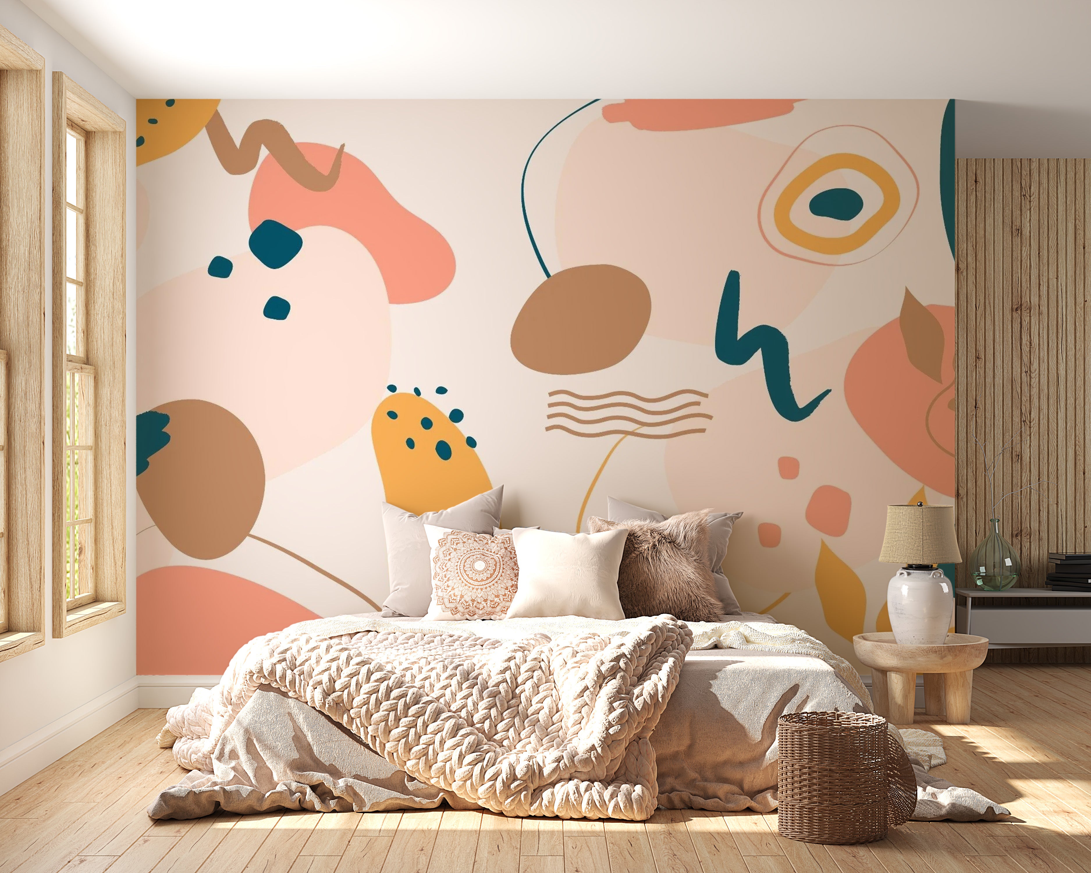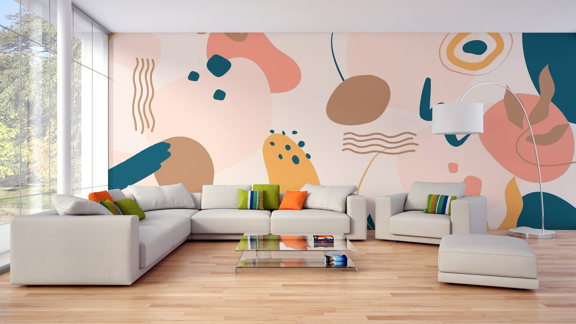 Our colorful abstract painting wallpaper will bring life back to your room. This modern wallpaper sticks to itself and makes a beautiful, bright background that looks great in any room. The high-quality print gives your room a fancy look, making it perfect for people who want something cool and cute. This wallpaper painting is the best way to update your room without spending a lot of money. It's easy to put up and take down. This abstract wallpaper is a beautiful and inexpensive way to change the look of your walls in any room, like the living room, bedroom, or office.