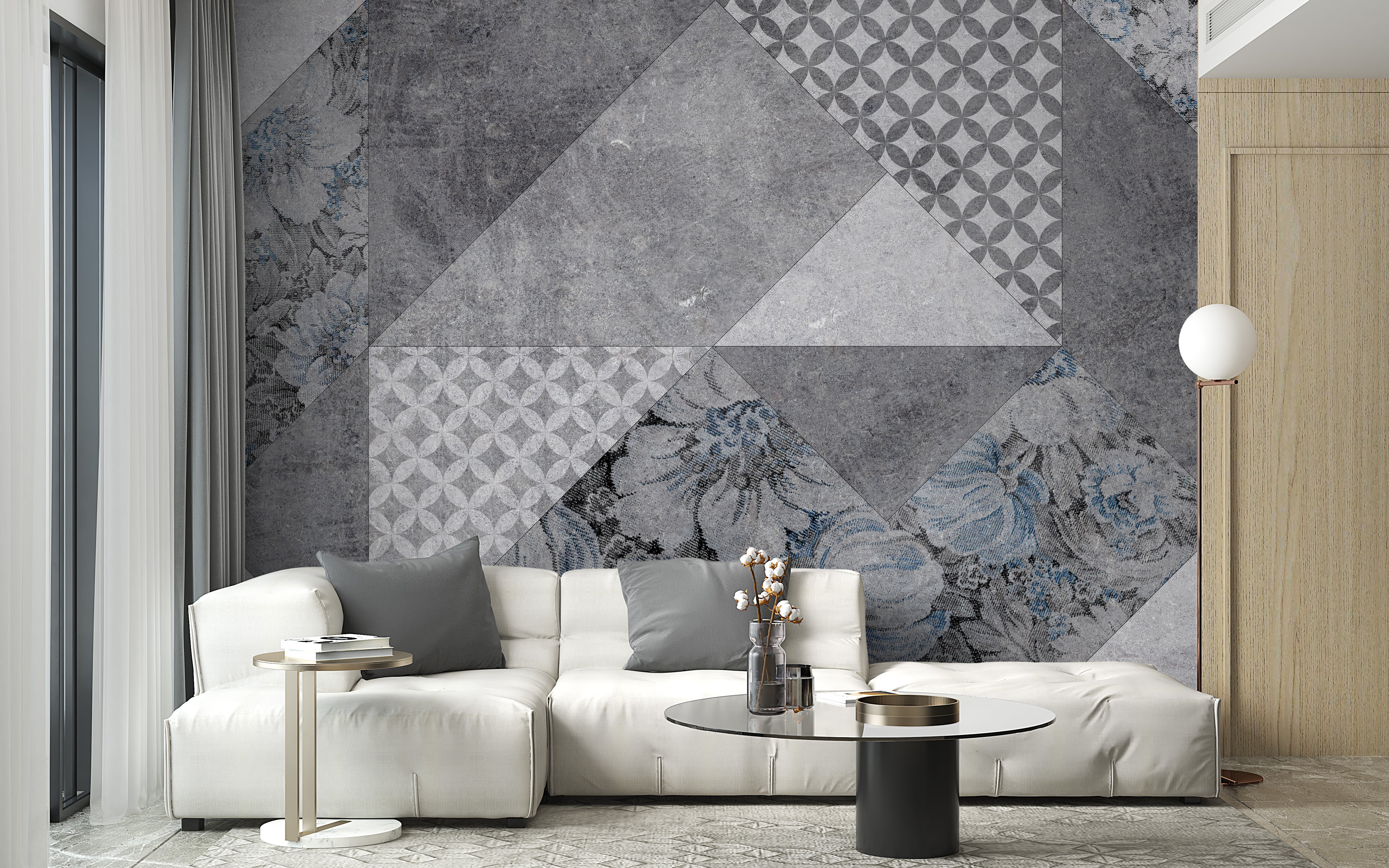 If you are looking for an easy way to spruce up your bathroom decor, look no further than the grey colored geometric flowers mural wallpaper. This artistic masterpiece brings a unique touch to your walls, with its intricate geometric patterns and delicate floral accents. The shades of grey used in this wallpaper add a touch of sophistication, while the playful flowers keep the vibe fun and light-hearted. This design will make you feel like you are bathing in a garden oasis, without even leaving your bathroom. So why not add some creative flair to your morning routine with this stunning geometric wallpaper?