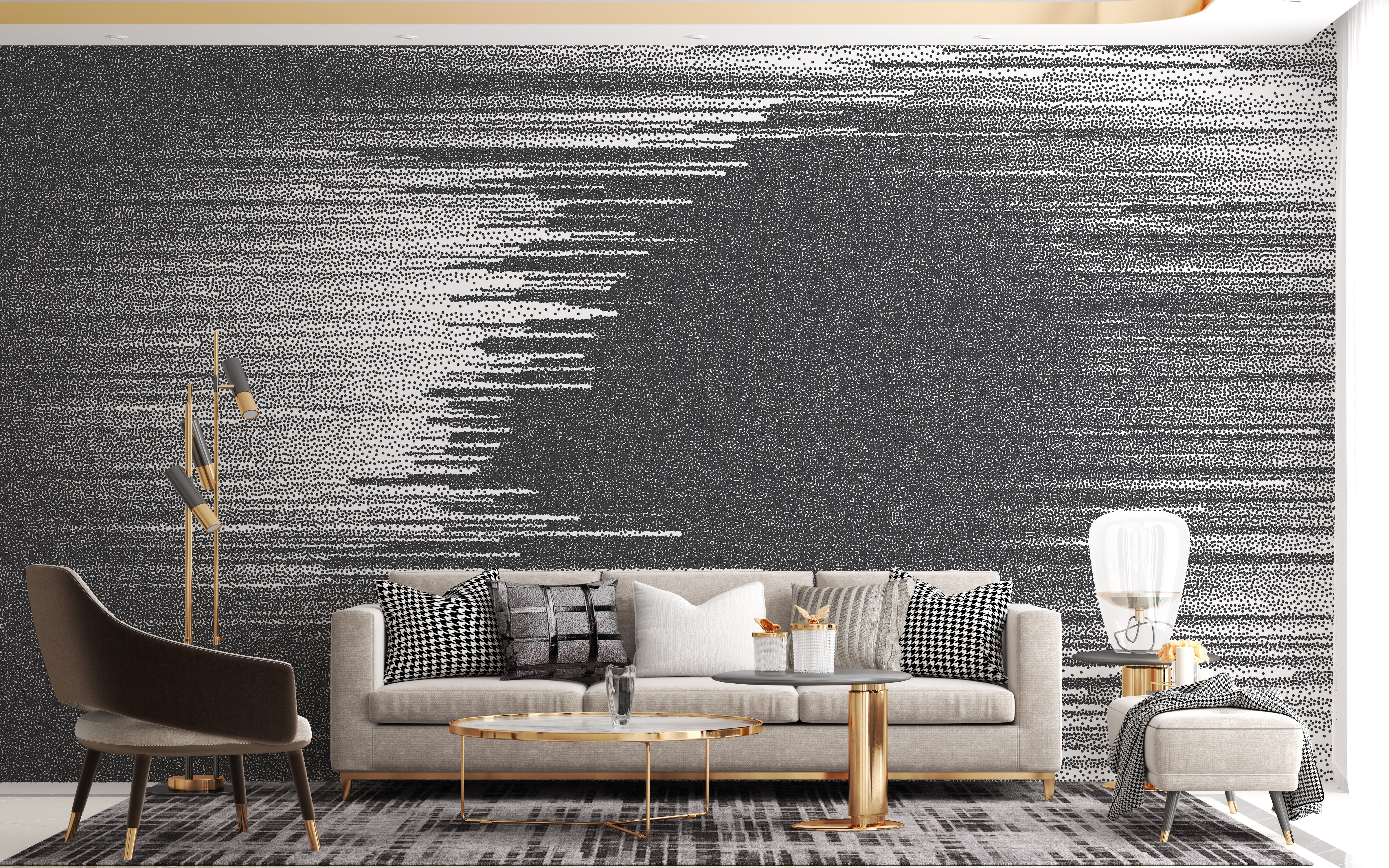 Unleash your creativity with the newest trend in home decor - glitch wallpaper! Be bold and choose a black and white abstract art mural wallpaper to add an avant-garde touch to your living room. The unique design will instantly give your walls a stunning new dimension that is sure to impress and inspire. The intricate pattern and futuristic vibe of this glitch wallpaper will create the perfect backdrop for your sleek and stylish furniture pieces while adding a touch of edginess to your living space. Be the envy of your friends and bring home this abstract wallpapert oday!