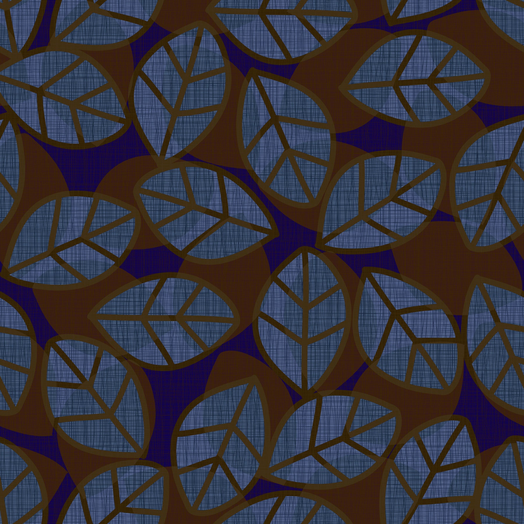 Immerse yourself in the enigmatic beauty of 'Abstract Leaves Dark,' a wallpaper that blends the familiar forms of nature with a subtly mysterious ambiance. This design features stylised leaf shapes, outlined in a deep brown, that create a captivating interplay of geometric abstraction. The interiors of the leaves are filled with a textured dark blue, evoking a feeling of twilight forests and hidden depths. These bold leaf shapes overlap across a deep indigo background creating a sophisticated and calming visual experience. Perfect for adding a touch of natural elegance and subtle drama to any space, 'Abstract Leaves Dark' offers a modern take on organic motifs, providing a statement piece that is both stylish and thought-provoking. Let this wallpaper transform your screen into a window to an artistic, nocturnal garden.