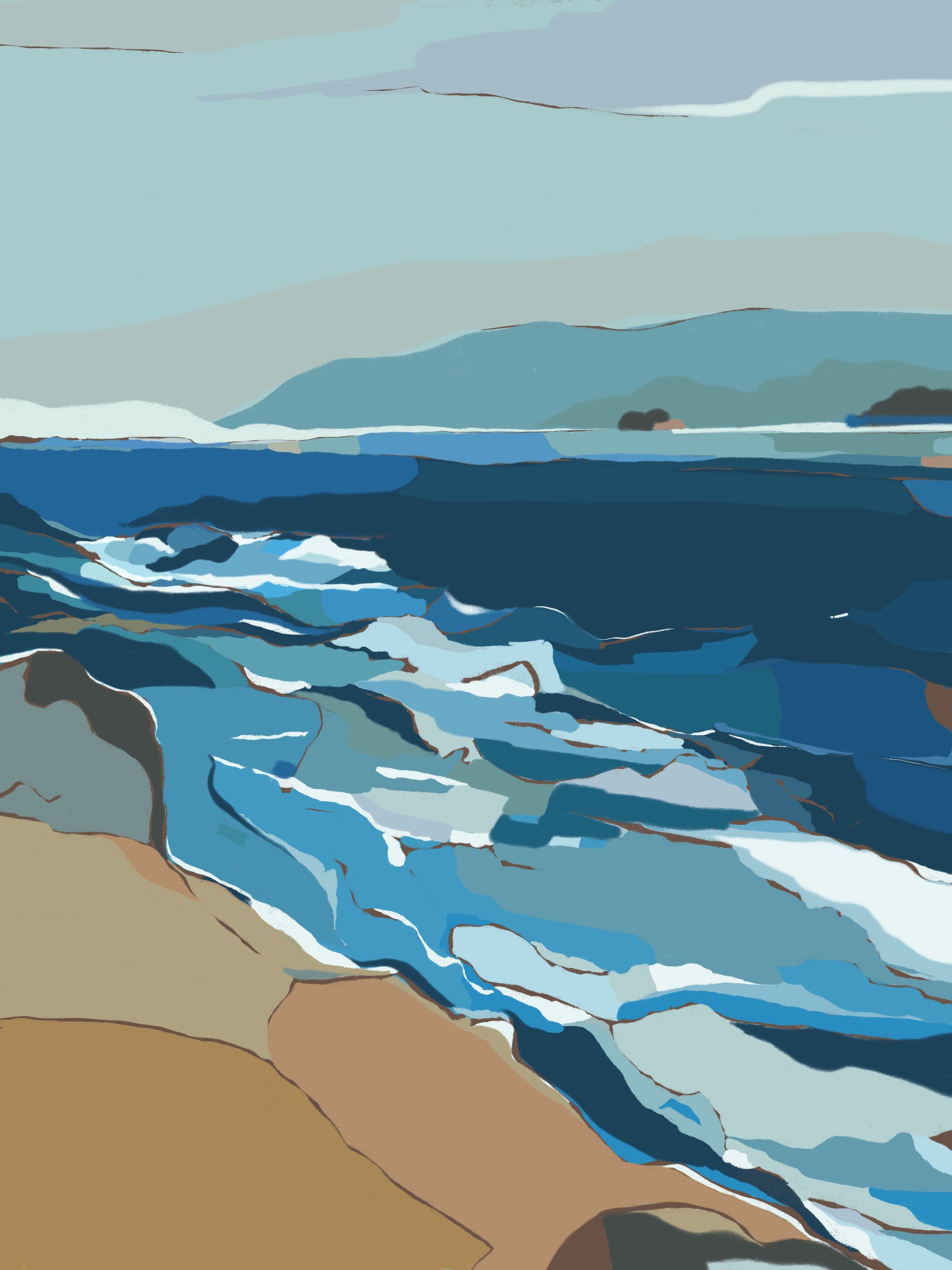 Dive into tranquility with this abstract wallpaper featuring a captivating seascape. The image utilizes a striking palette of blues, from deep navy to soft aquamarine, to portray the dynamic energy of the ocean. Subtle hints of beige and taupe ground the design, adding a sense of calm amidst the fluid movement of the waves. Its modern, artistic style lends itself beautifully to contemporary living spaces, promoting a sense of relaxation and peaceful contemplation. Perfect for spaces needing a touch of sophisticated seaside charm.