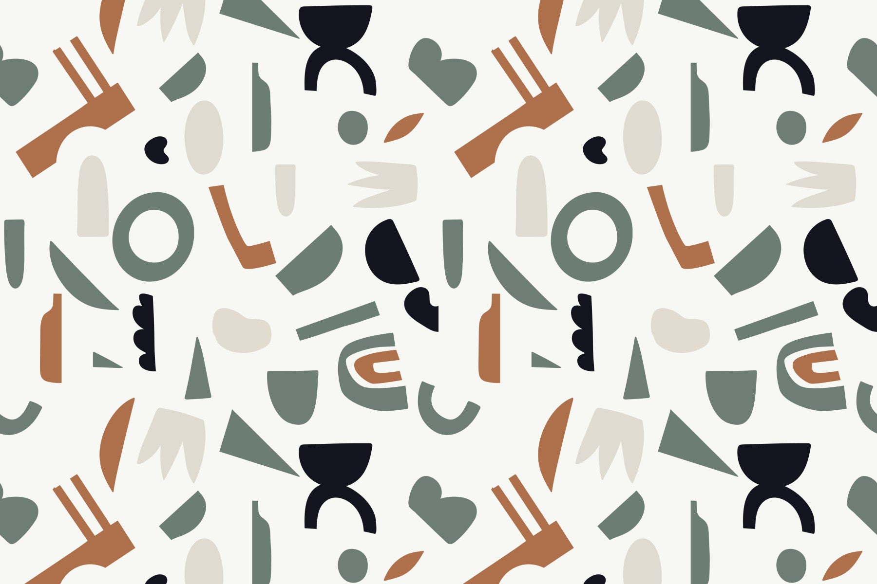 Introduce a modern twist to your interiors with this captivating abstract design. The wallpaper for walls showcases an array of organic shapes in earth tones, including brown, black, beige, and green, on a light background. This balanced composition creates a playful yet sophisticated visual texture. It works wonderfully in living rooms, bedrooms, or hallways, adding a touch of contemporary style and visual interest to any space. Consider this option to create a soothing backdrop.