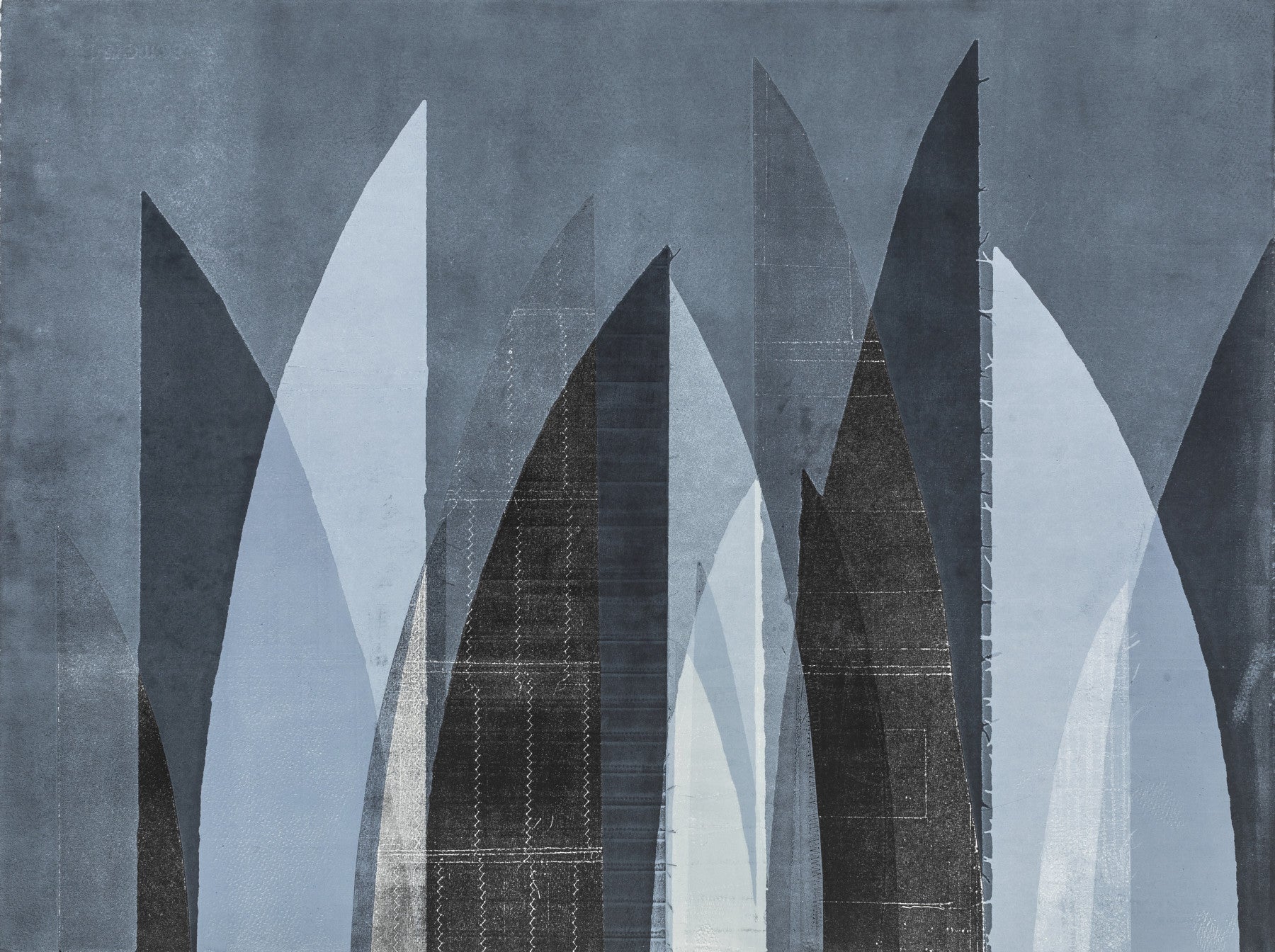 A graceful subtle abstract wall mural in cool, natural tones.