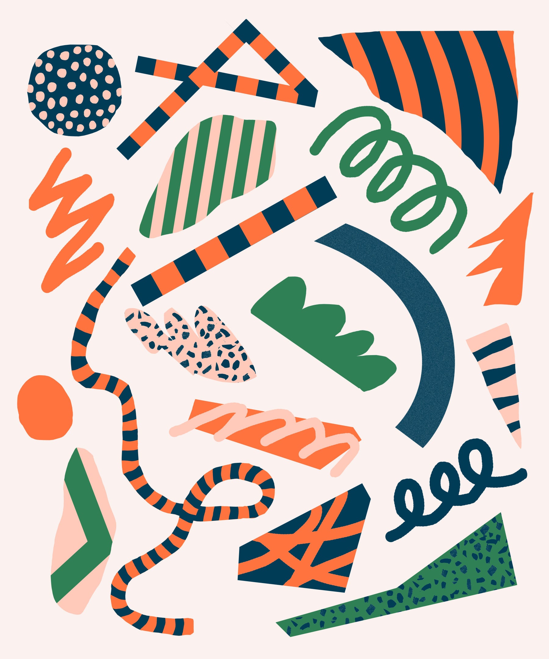 Bring a dose of modern fun to your home with this lively abstract design. Bold shapes and lines in orange, navy, and green dance against a soft beige backdrop. This wallpaper for walls adds a playful touch and creates a welcoming vibe. It's a great choice for kids' rooms, playrooms, or any space where you want to inspire creativity and joy. The clean design works well in modern interiors and complements minimalist styles.