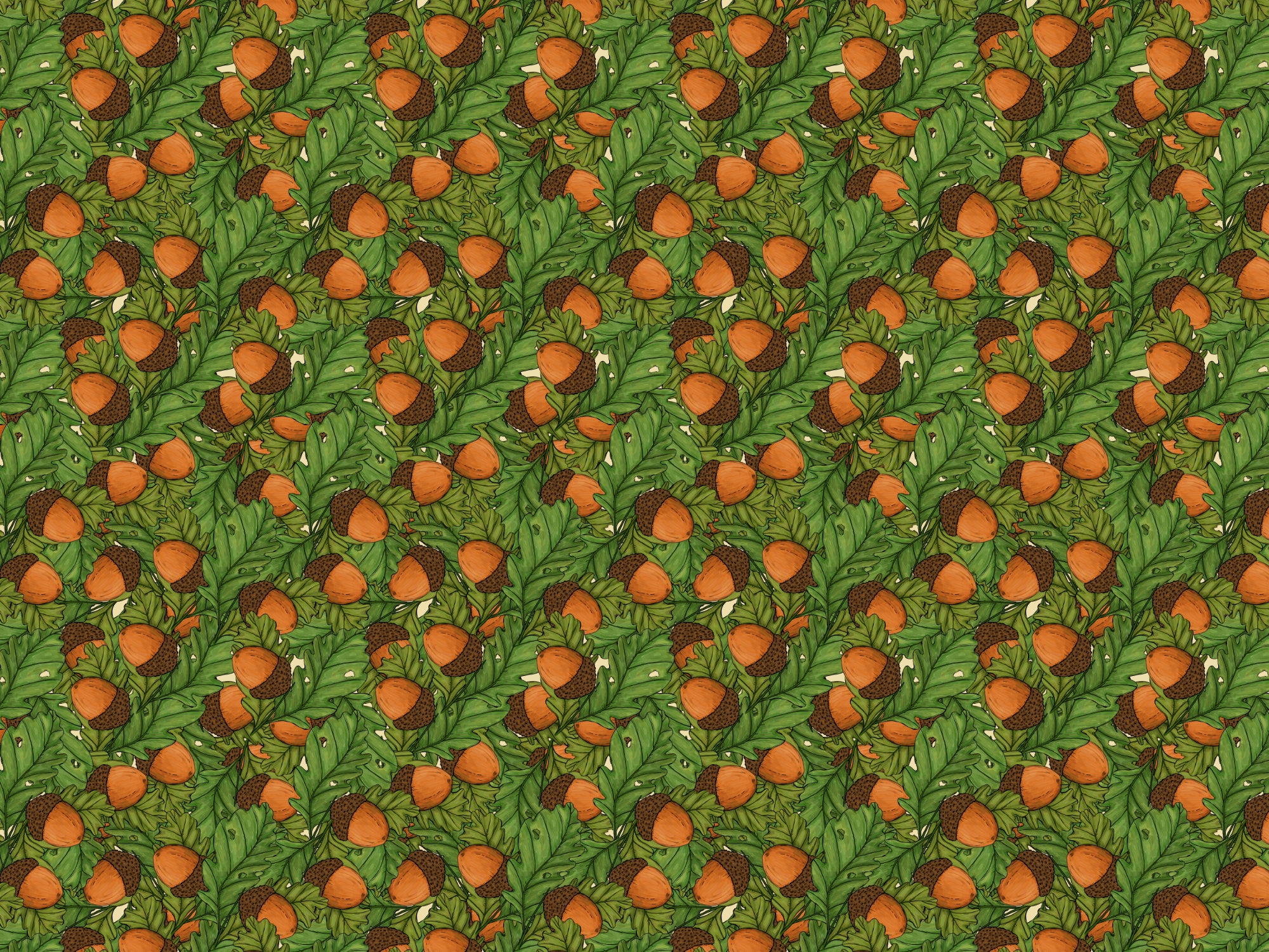 Charming acorn pattern wallpaper for cozy and rustic interiors.