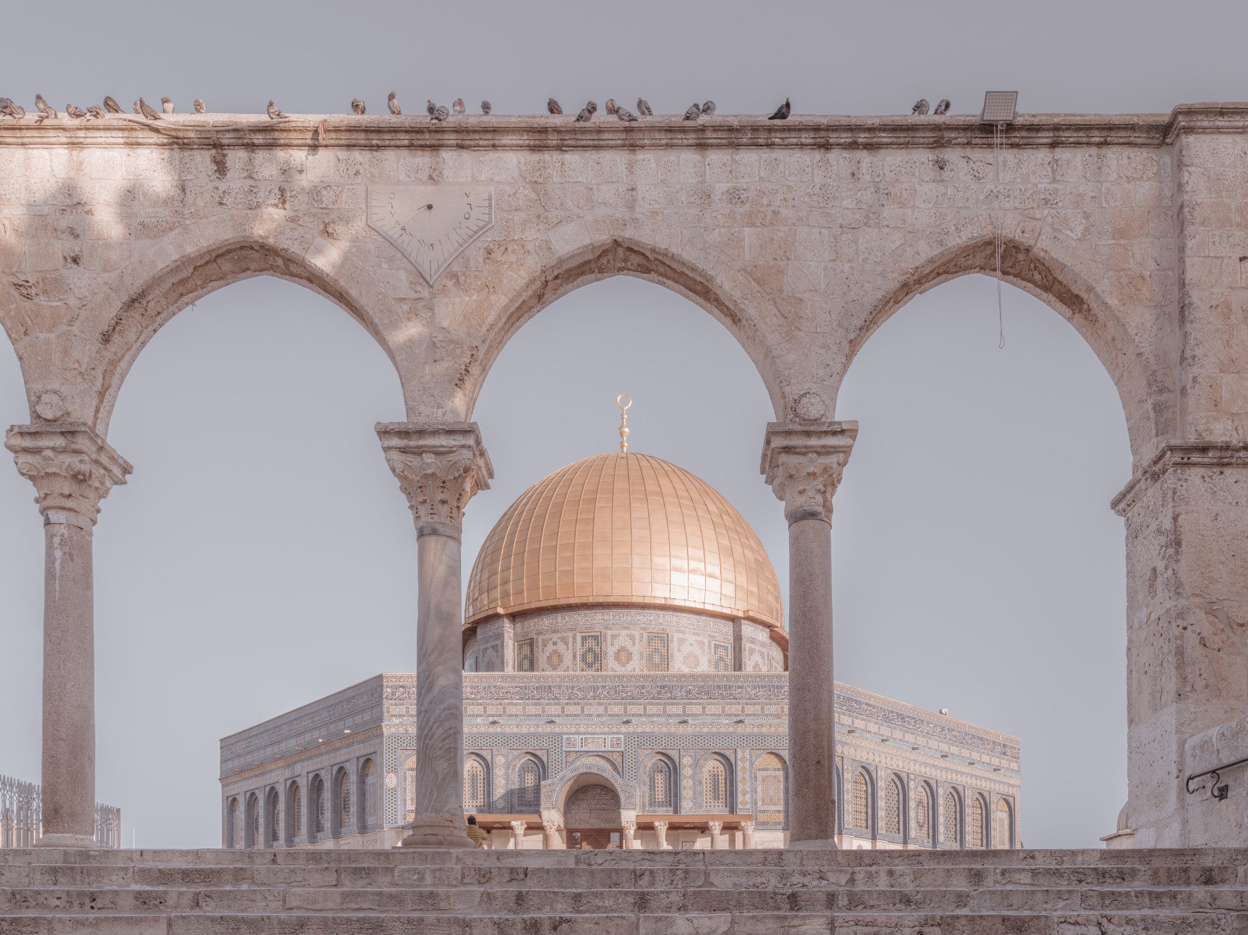 Bring a sense of peace and historical beauty into your space with our Al-Aqsa Mosque Wall Mural. This beautiful mural wallpaper features the iconic Golden Dome framed by ancient stone arches, creating a scene of architectural grandeur and serenity. The soft, gentle light and intricate details give your space a quiet, contemplative atmosphere. It's the perfect wallpaper for walls in a living room, study, or any space where you seek a touch of historical and spiritual significance.