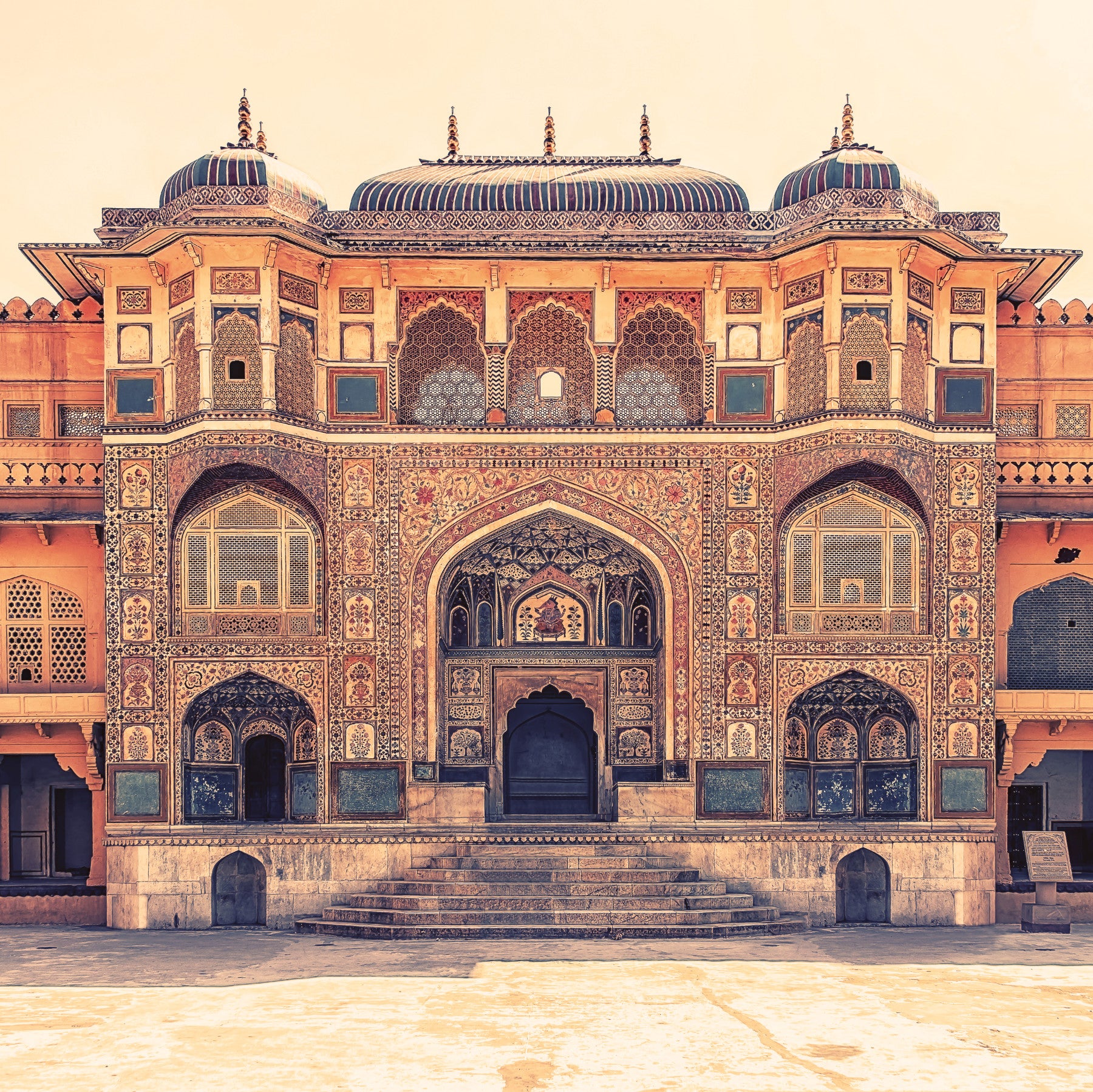 Transform your living space with this opulent wallpaper for walls, capturing the essence of Amber Palace. Detailed arches, intricate floral patterns, and geometric designs bring history to your space. Warm hues of peach, beige and teal create a sophisticated and inviting atmosphere. This wallpaper works beautifully in dining rooms, living rooms or hallways, lending a touch of regal elegance. Elevate your home's aesthetic with the intricate details and unique patterns that showcase the architectural beauty.