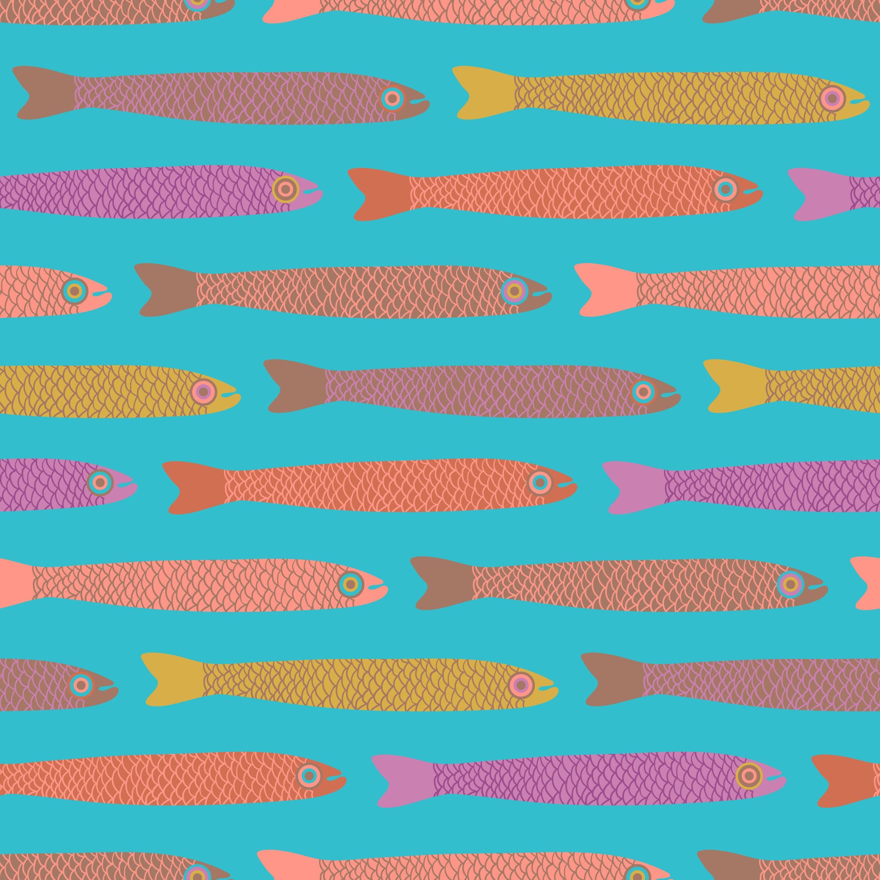 Anchovies retro fish wallpaper design