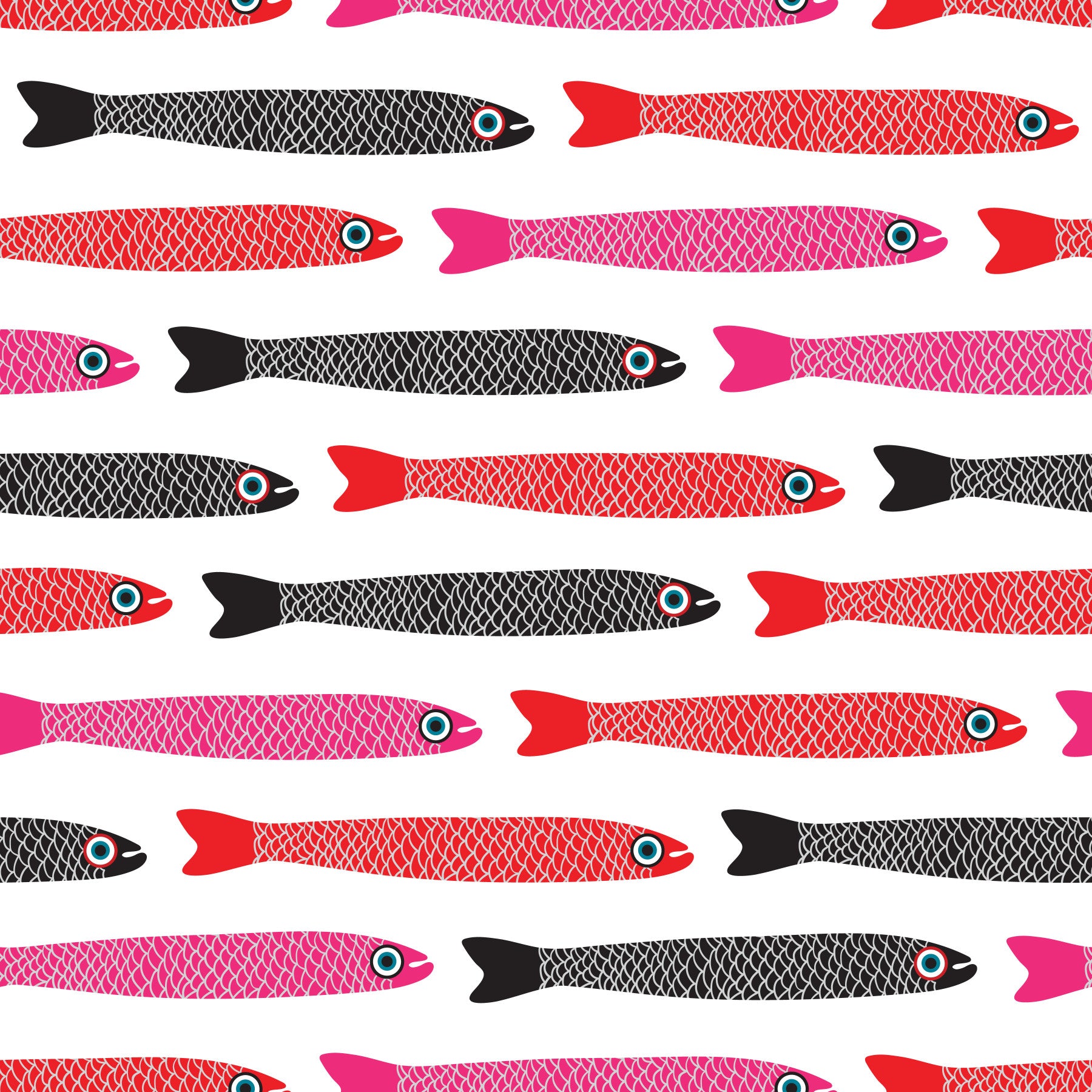 Anchovies Retro Red Pink Black Fish on White Wallpaper⁠
