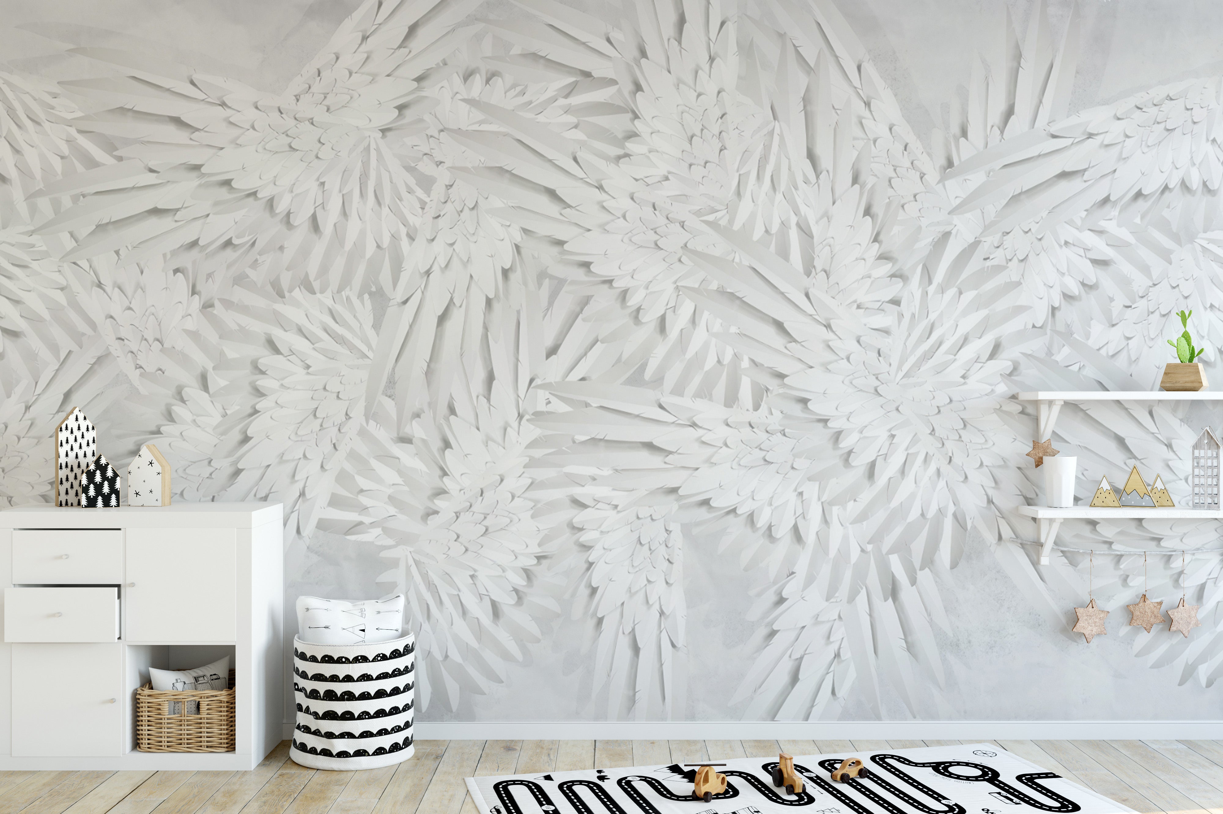 Angelic Aegis wallpaper mural with intricate feather designs.