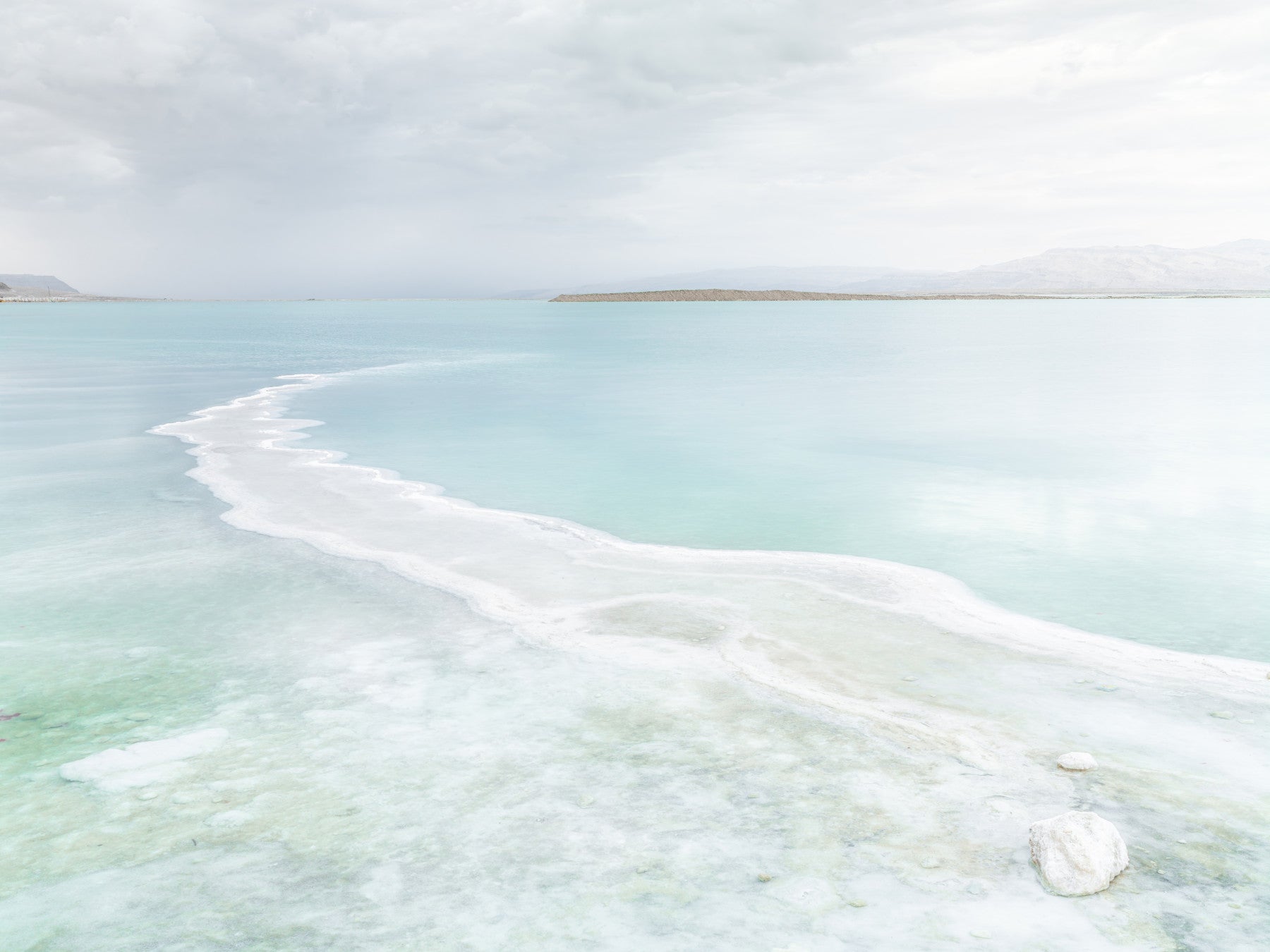 Dead Sea, Israel. Breathe fresh air into your interiors with this scenic wall covering. The gentle hues of aqua and crisp white combine to create a calming ambiance. This wallpaper for walls brings a sense of openness, making it a beautiful addition to smaller spaces or rooms that require a light touch. Imagine this wallpaper in a bathroom or bedroom, where its soothing aesthetic can enhance relaxation. The design complements modern and minimalist styles, providing an understated yet visually engaging backdrop. Experience the tranquility and simple elegance this design brings to your everyday living spaces.