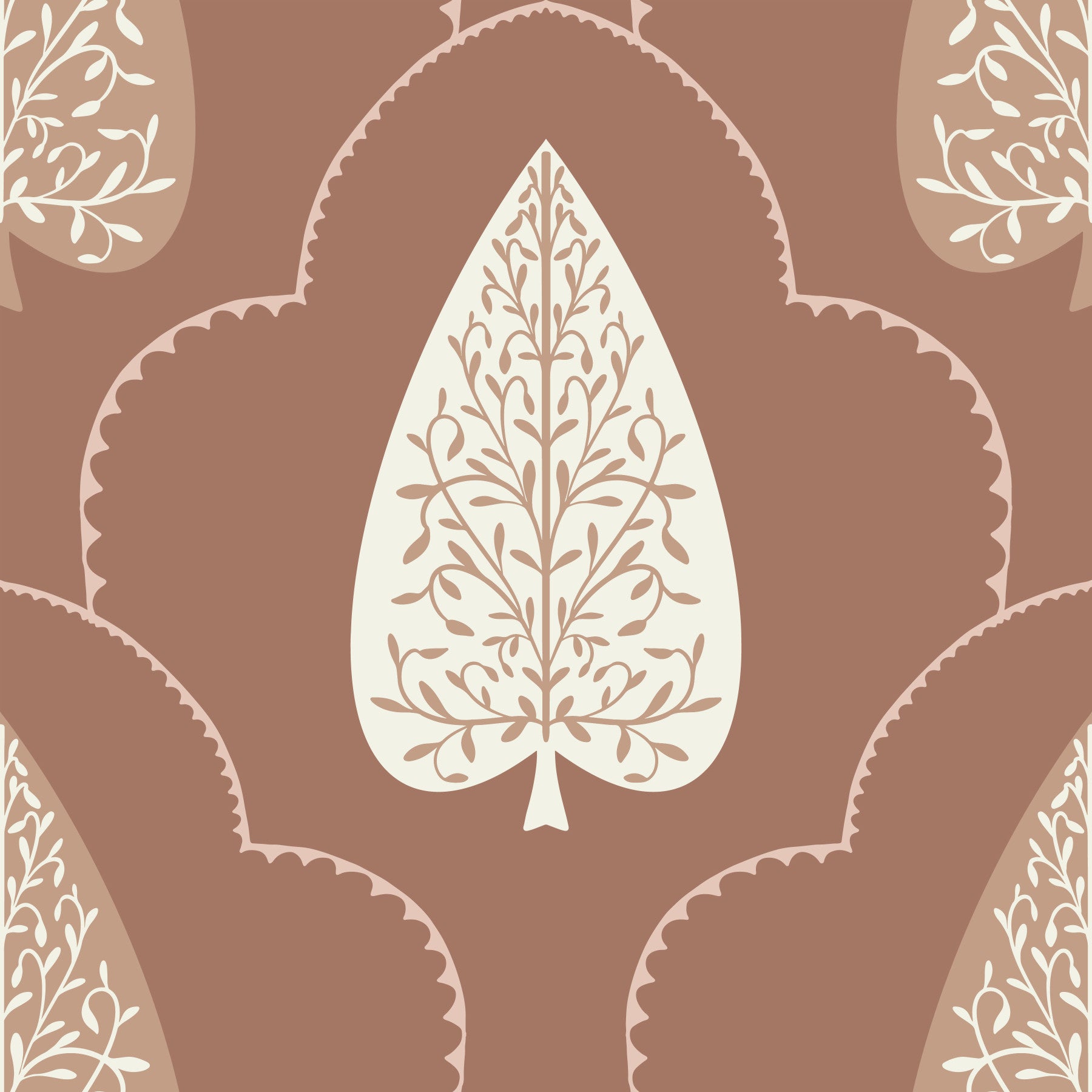 Arboreal Accent wallpaper, organic leaf pattern, rust brown tones.