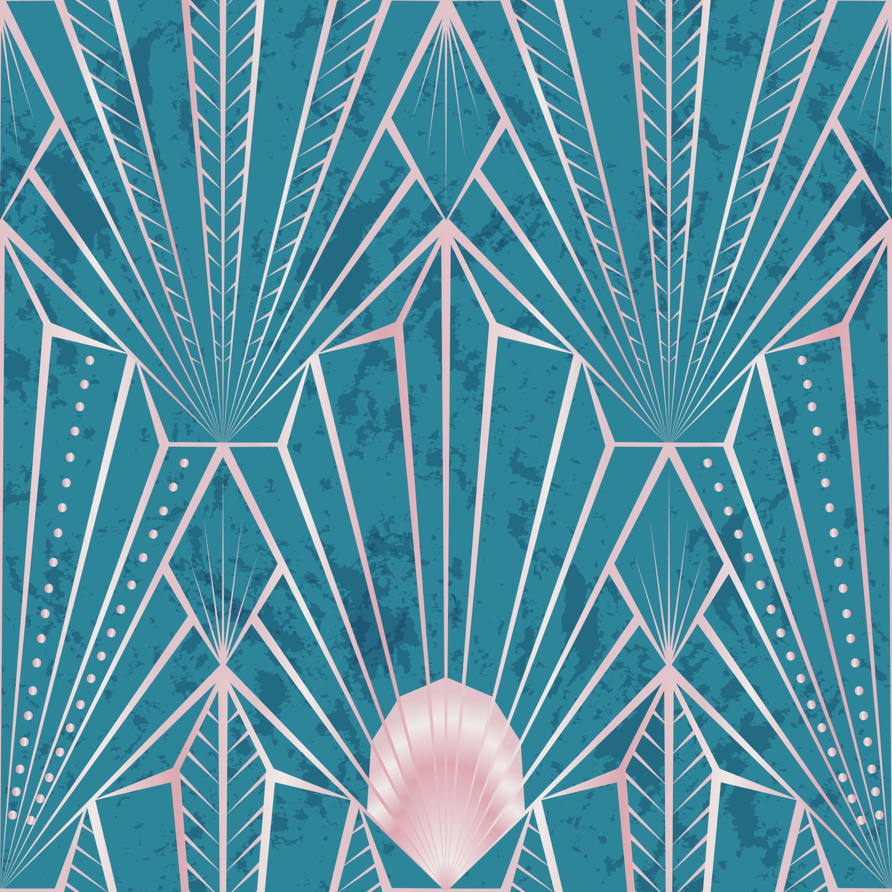 Art Deco teal and rose gold wallpaper by Giffywalls