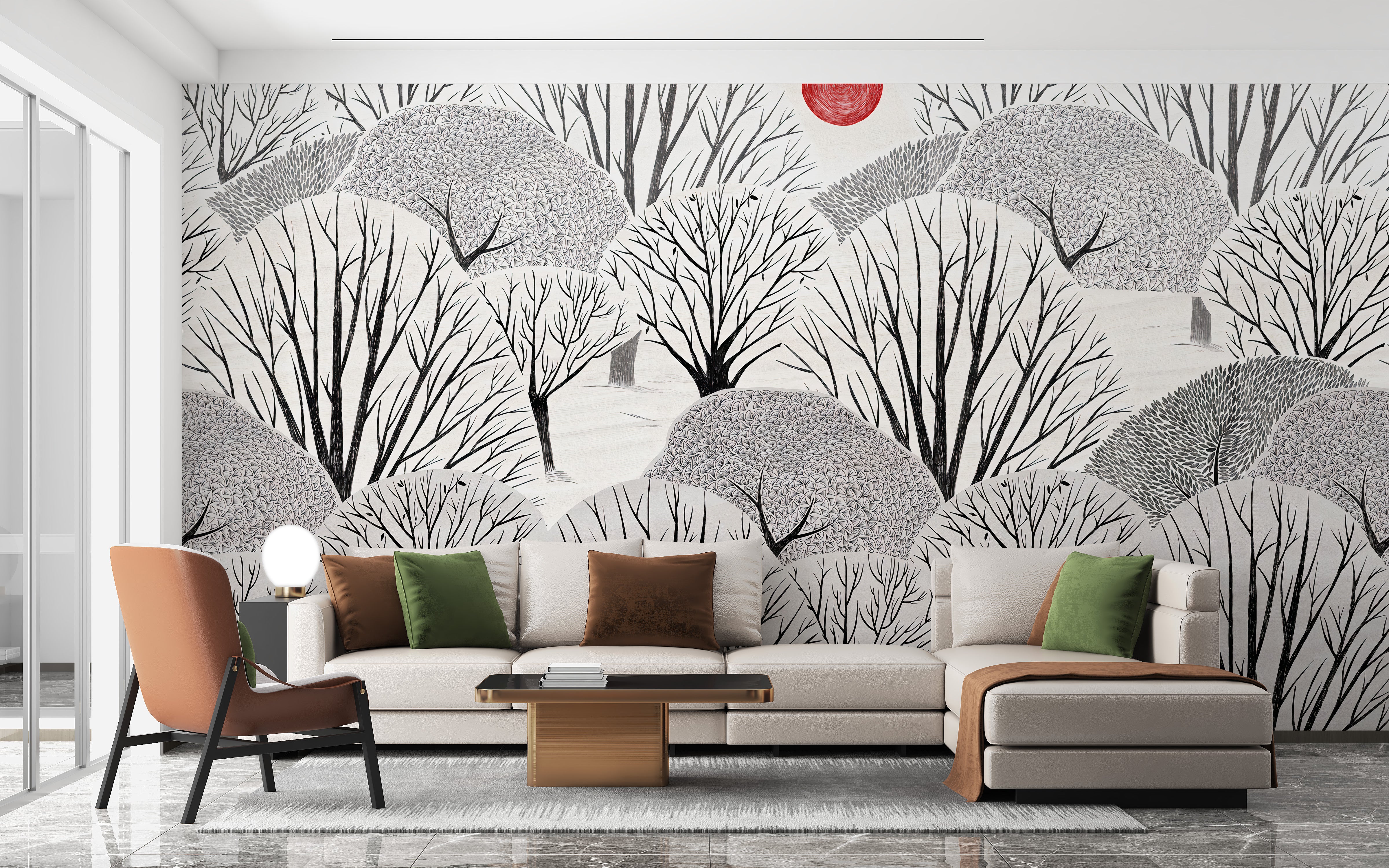 Artistic Black & White Trees Wallpaper Mural - Giffywalls