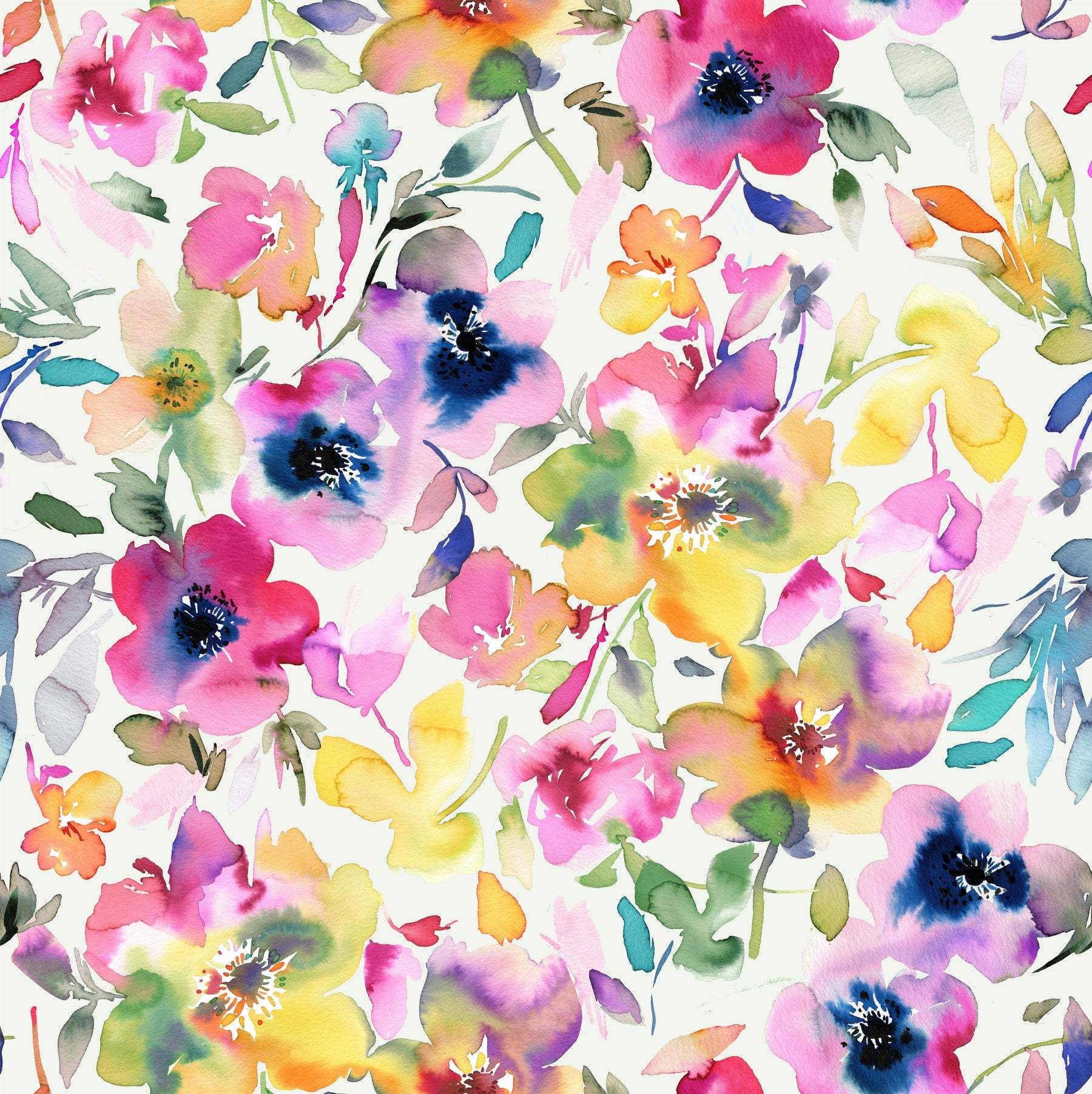 Embrace the vibrant energy of summer with this artistic floral wallpaper. Loose watercolor strokes create a breathtaking display of blossoms in a spectrum of pinks, yellows, and blues, set against a soft, neutral background. The style is both impressionistic and modern, capturing the effortless beauty of summer blooms. Each flower is a unique explosion of color, creating a dynamic and joyful atmosphere perfect for adding a touch of artistic freshness to any digital device. This wallpaper is a celebration of summer's carefree spirit and the inherent beauty found in nature's artistry.