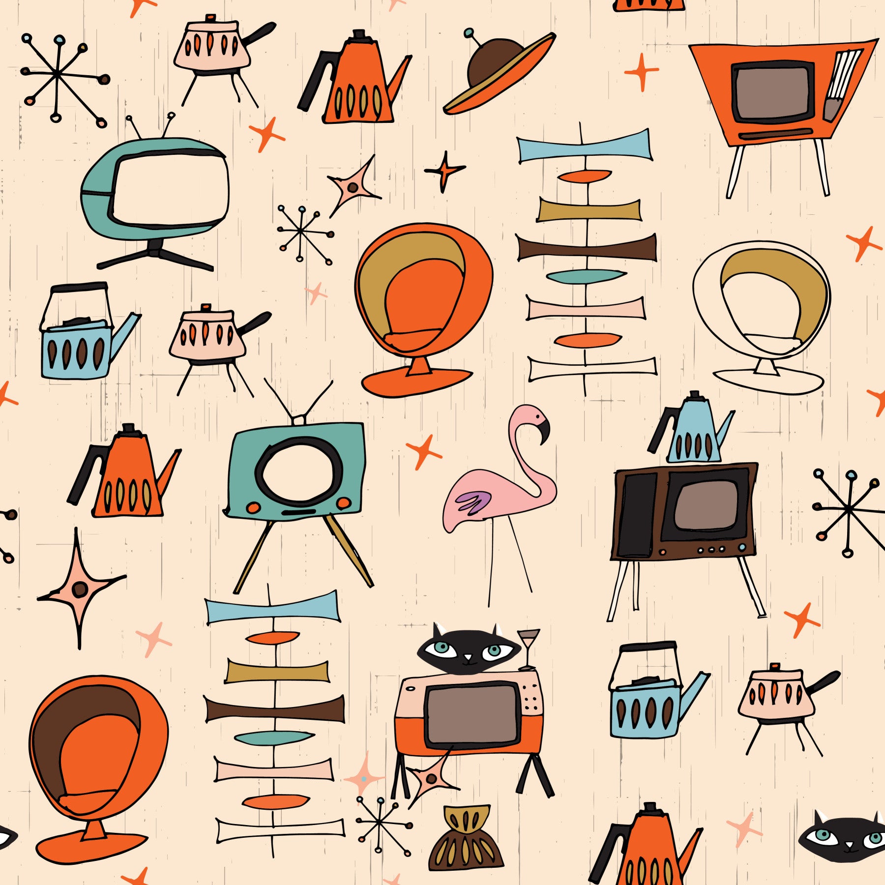 Atomic Retro Wallpaper, Mid-Century Furniture, Kitsch Devices Print.