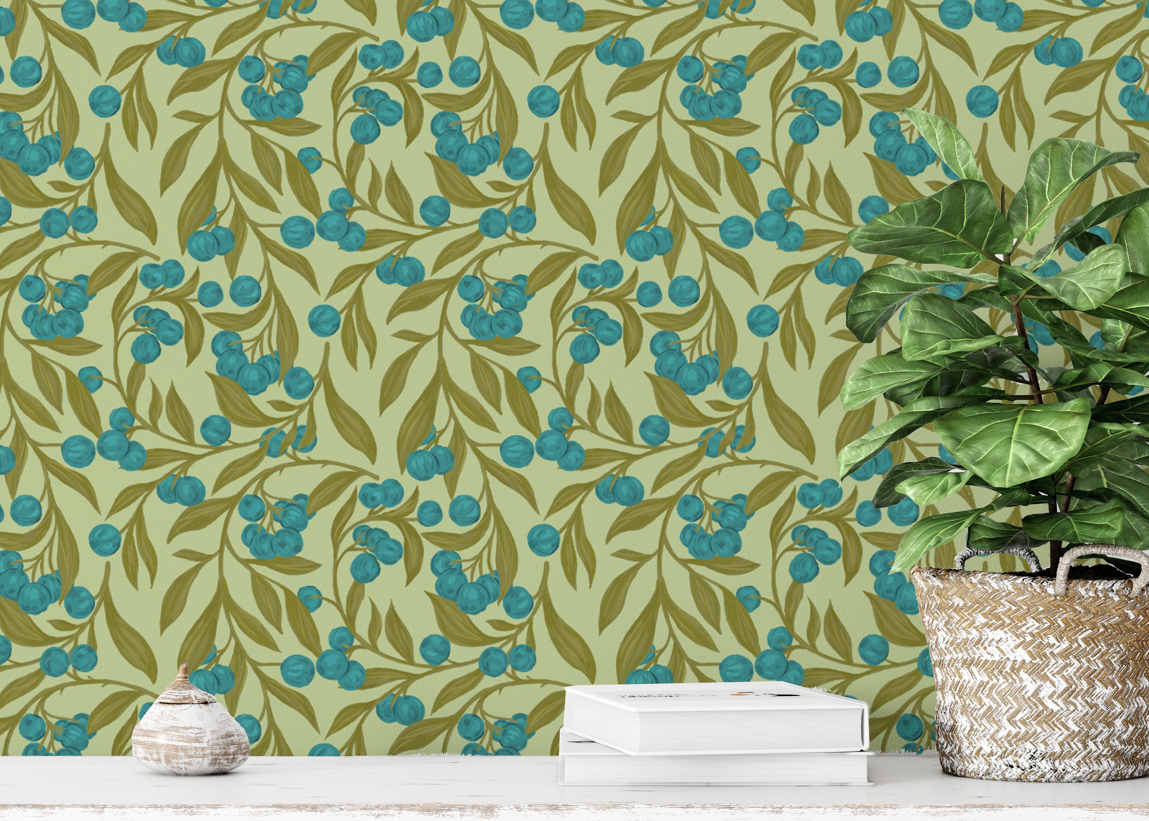 Create the perfect fall touch with our autumn berries blue botanical wallpaper. Adorned with succulent blue berries and green leaves the pattern's rich colouration creates a three-dimensional effect that brings drama to virtually any surface. This botanical wallpaper has been designed with great care, and it is sure to breathe new life into any room that needs an injection of natural charm. Its intricate design and bright colours beg the attention of its wearer. Buy this premium quality plant wallpaper and have autumn forever. Grab yours now and get free dispatching on your order. Last Chance: Grab our exclusive wallpaper designs before they're gone!