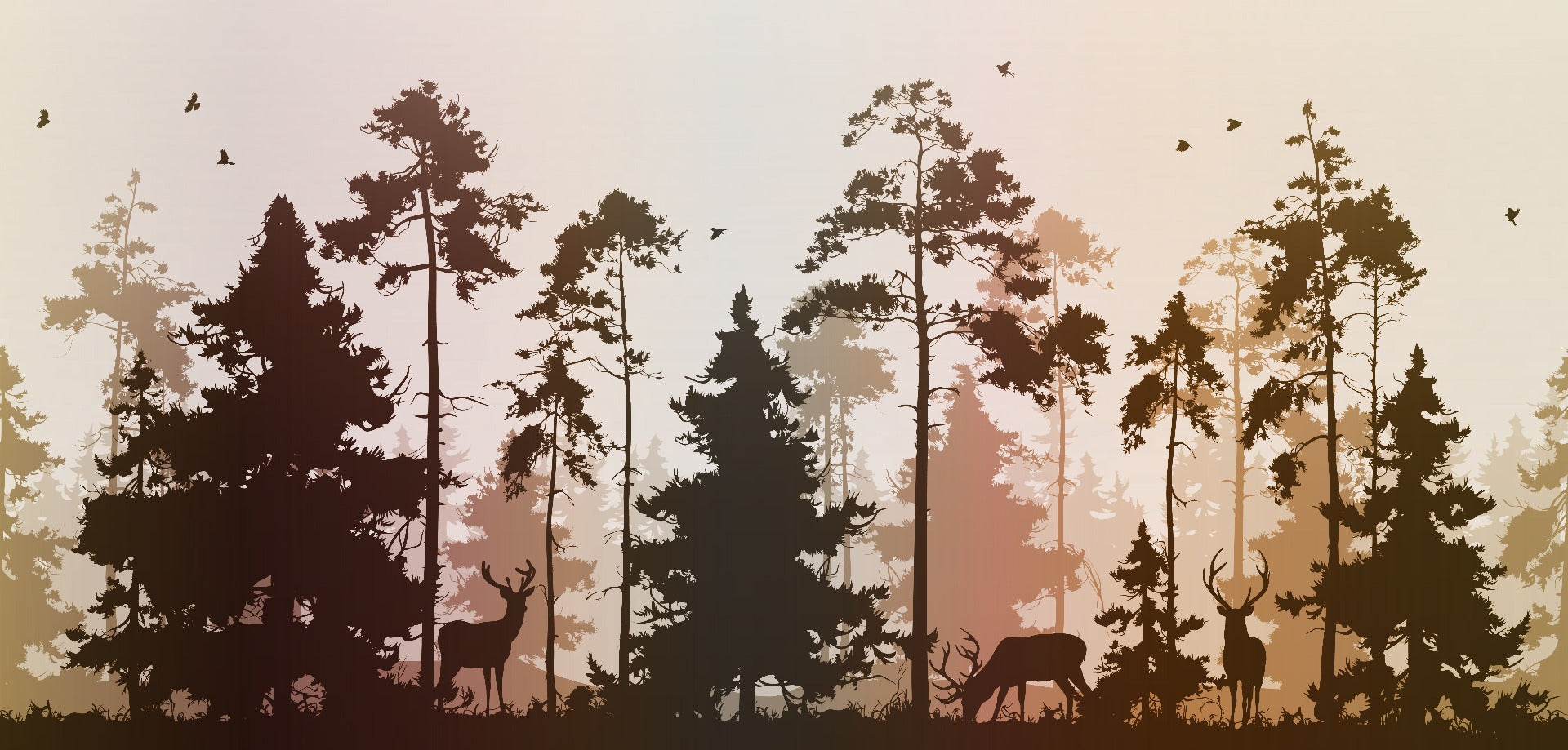 Autumn Dark Silhouette Forest with Deer Wallpaper