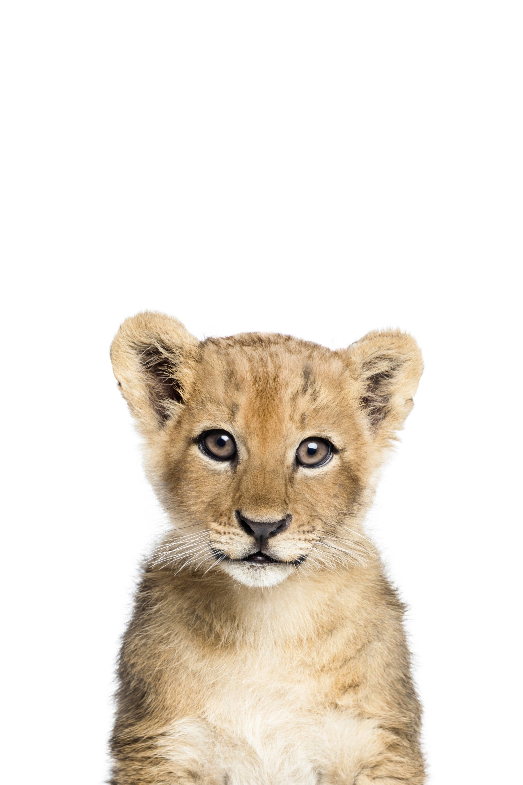 An adorable close-up of a baby lion cub, set against a pristine white background. Its large, expressive eyes and soft, light brown fur create a heartwarming and innocent image. The cub's curious gaze directly at the viewer establishes an immediate connection, emphasizing its playful and vulnerable nature. This wallpaper offers a touch of wild beauty, perfect for those seeking a gentle and captivating image to brighten their digital spaces. The high contrast against the white background enhances the details of the cub's fur and features, making it a stunning and endearing addition to any screen.
