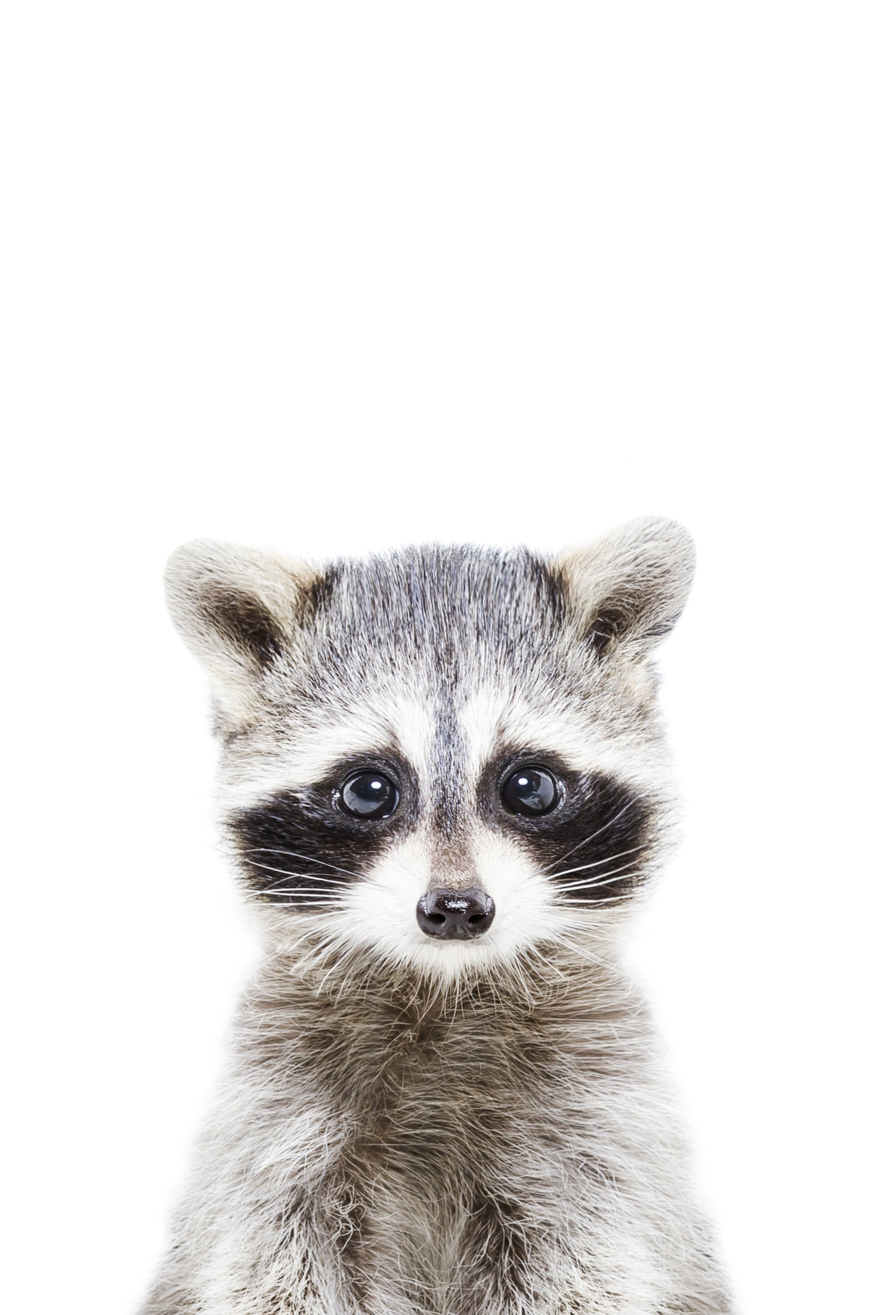 An adorable close-up portrait of a baby raccoon, its large, expressive eyes captivating against a pristine white background. The soft, fluffy fur is beautifully detailed, showcasing the intricate markings of its face. This wallpaper exudes a heartwarming and innocent mood, perfect for adding a touch of playful wildlife charm to any digital device. The image's simplicity and focus on the raccoon's endearing features make it a charming and peaceful addition to your desktop or mobile screen, bringing a sense of the wild into your everyday life. The clean white background ensures the baby raccoon remains the center of attention, highlighting its cuteness and undeniable appeal.