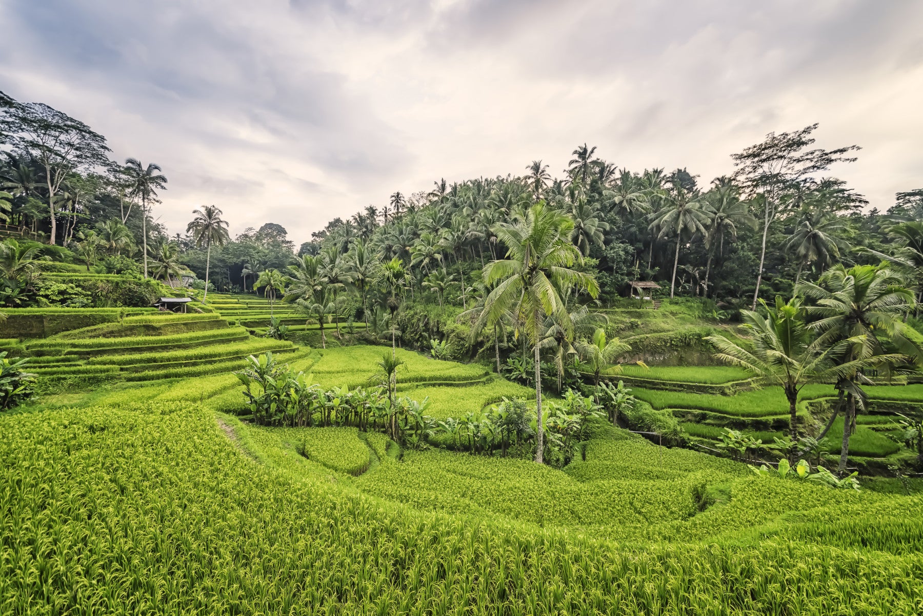 Immerse yourself in the lush beauty of Bali with this captivating wallpaper for walls. Bright green rice terraces stretch across the landscape, interspersed with towering palm trees under a soft, cloudy sky. The stepped design provides a dynamic visual texture, creating depth and interest for your walls. This wallpaper transforms your living room, bedroom, or study into a tranquil escape. It adds a natural, calming influence, making it a perfect backdrop for relaxation and contemplation. It complements modern, minimalist, or even bohemian interiors, bringing an element of exotic travel to your space.