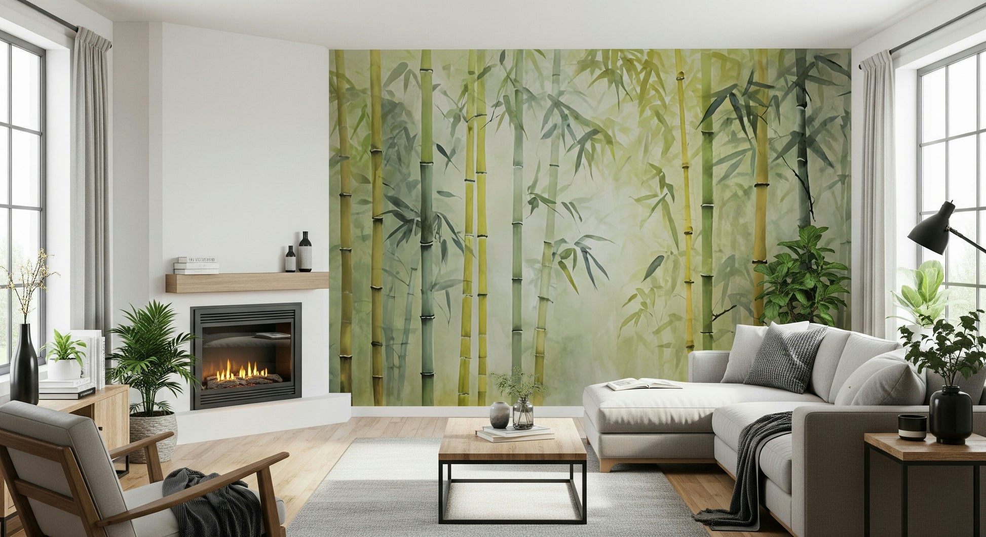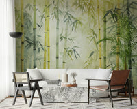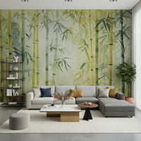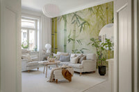 Infuse your interior with the tranquil charm of a bamboo forest. This wallpaper for walls captures the essence of nature through a muted colour palette of greens and yellows, creating a calming atmosphere in any room. The design features delicate bamboo stalks and leaves, evoking a sense of peace and serenity. It works exceptionally well in bedrooms, living rooms, or even bathrooms, adding a touch of nature's elegance to your space. This wallpaper enhances the feeling of spaciousness, making it ideal for smaller rooms that need a touch of the outdoors.