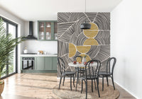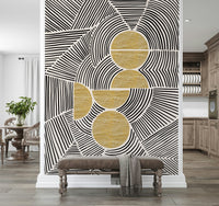Infuse your interior space with the striking harmony of the "Bauhaus - Tribal" collection. This expressive wall decor piece melds the geometric precision of the Bauhaus movement with the raw, uninhibited energy of tribal art. Bold black lines dance across a neutral canvas, forming captivating patterns that evoke a sense of rhythm and ancestral connection. Intersecting shapes create visual complexity, guiding the eye through a stimulating landscape of form and texture. Accents of textured gold add a touch of luxurious warmth and primitive elegance, grounding the design in a sophisticated yet earthy aesthetic. Transform your wall into a focal point that celebrates both modernism and the timeless allure of indigenous artistry. Let this statement design create a feeling of dynamic, artistic exploration.