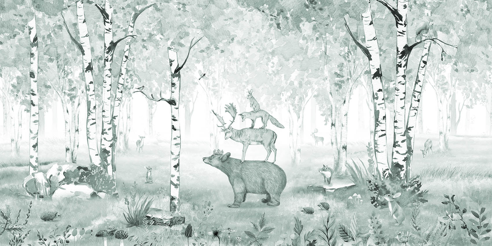 Forest-themed Blue Bear King wallpaper for serene spaces