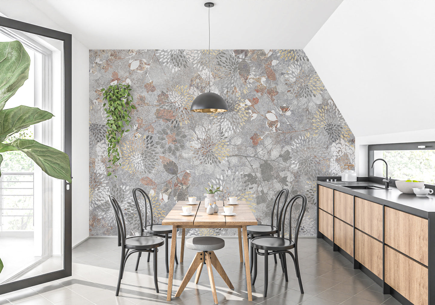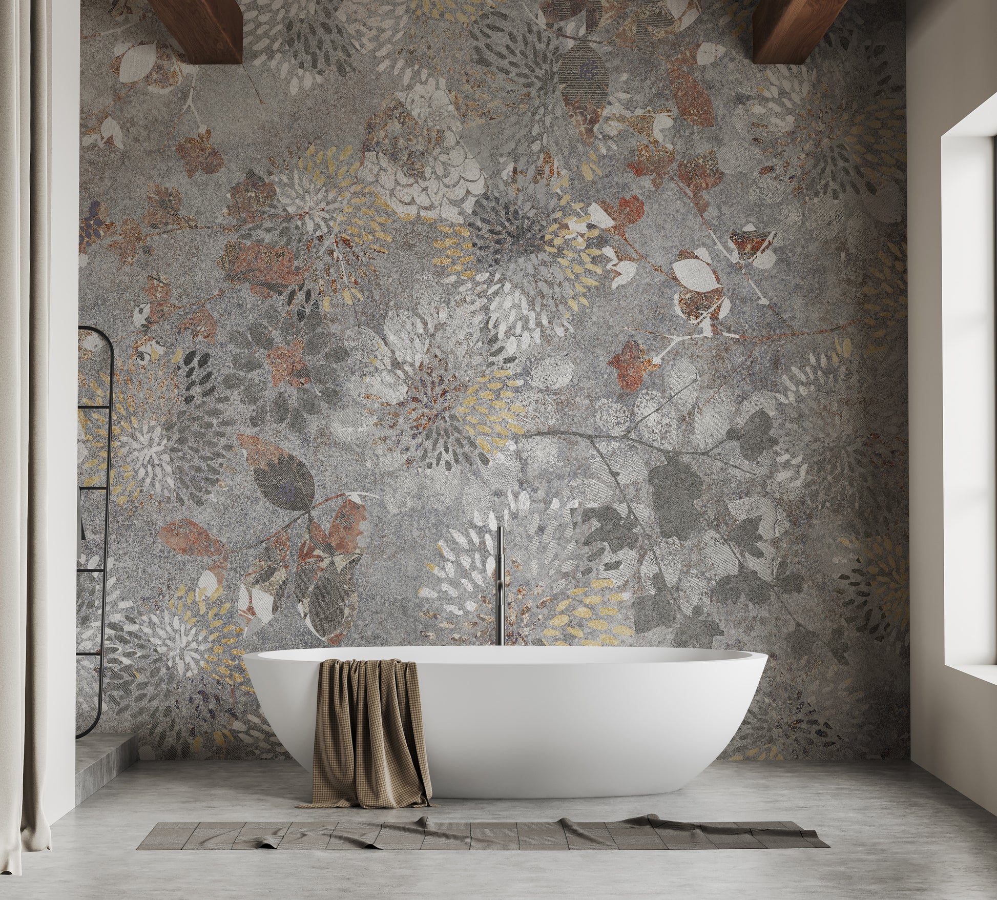 Textured flower wallpaper for a rustic modern vibe