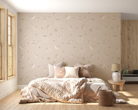 Neutral beige forest friends wallpaper for timeless decor.