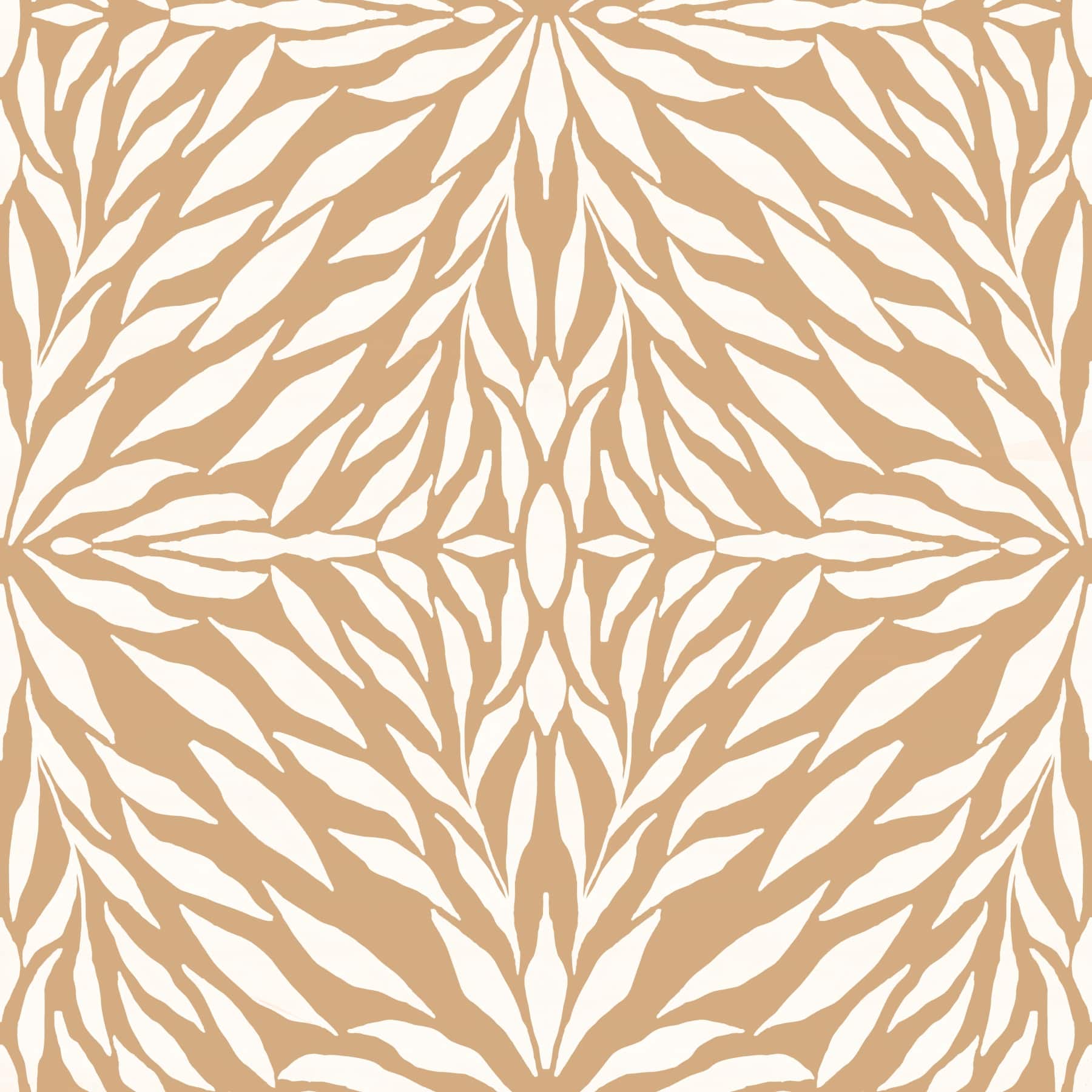 Warm up your space with Zenith Leaves – Clay wallpaper. Featuring a symmetrical leaf pattern in a clay-toned background with soft cream detailing, this design adds earthy balance and flow. The organic shapes form a structured layout that brings harmony without feeling rigid. Ideal for bedrooms, dining areas, or cozy reading spots, this wallpaper for walls blends beautifully with wood, linen, and neutral palettes. The hand-drawn feel lends it a natural touch while the warm clay hue brings comfort and charm. A perfect pick for those who appreciate nature-inspired wall design with a cozy, grounded aesthetic.
