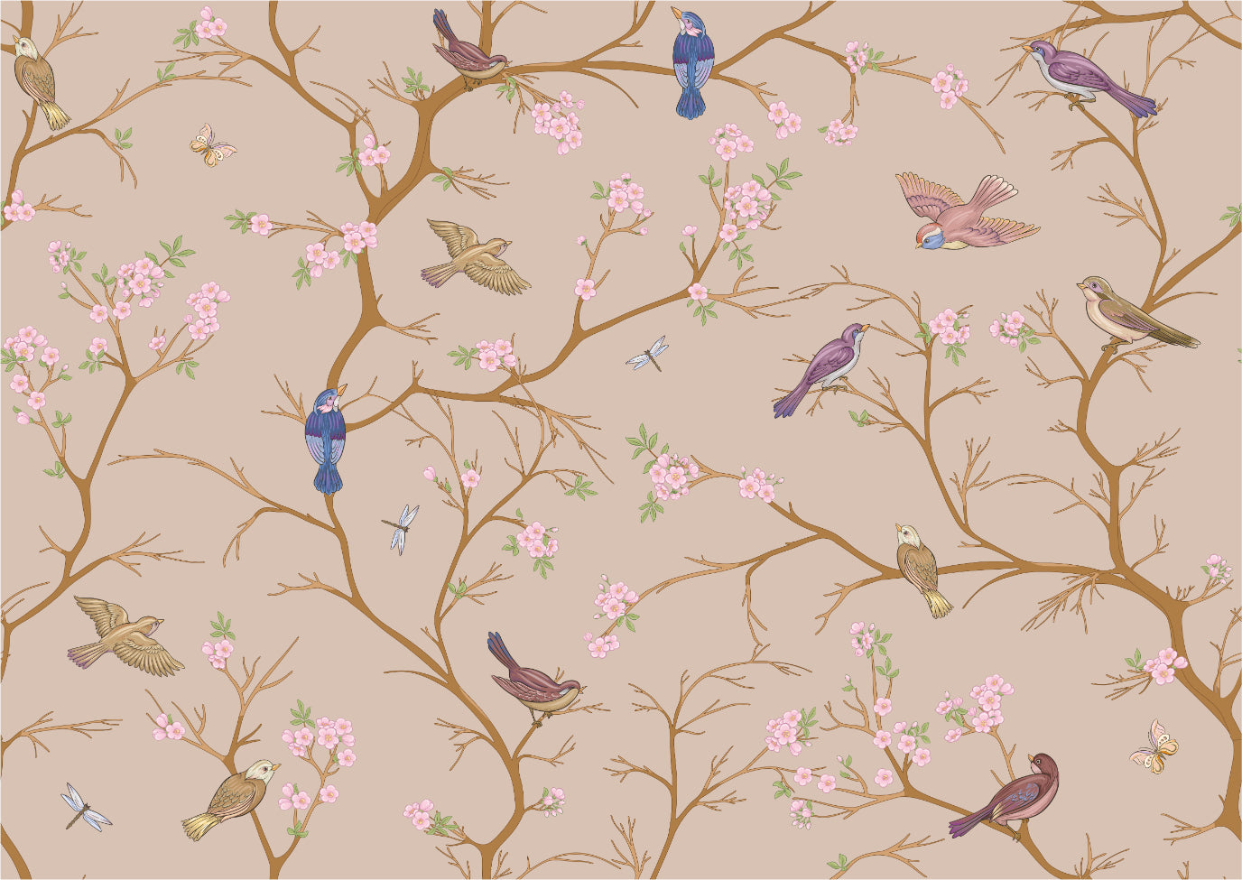 Beige Chinoiserie Wallpaper adds elegance to bedrooms