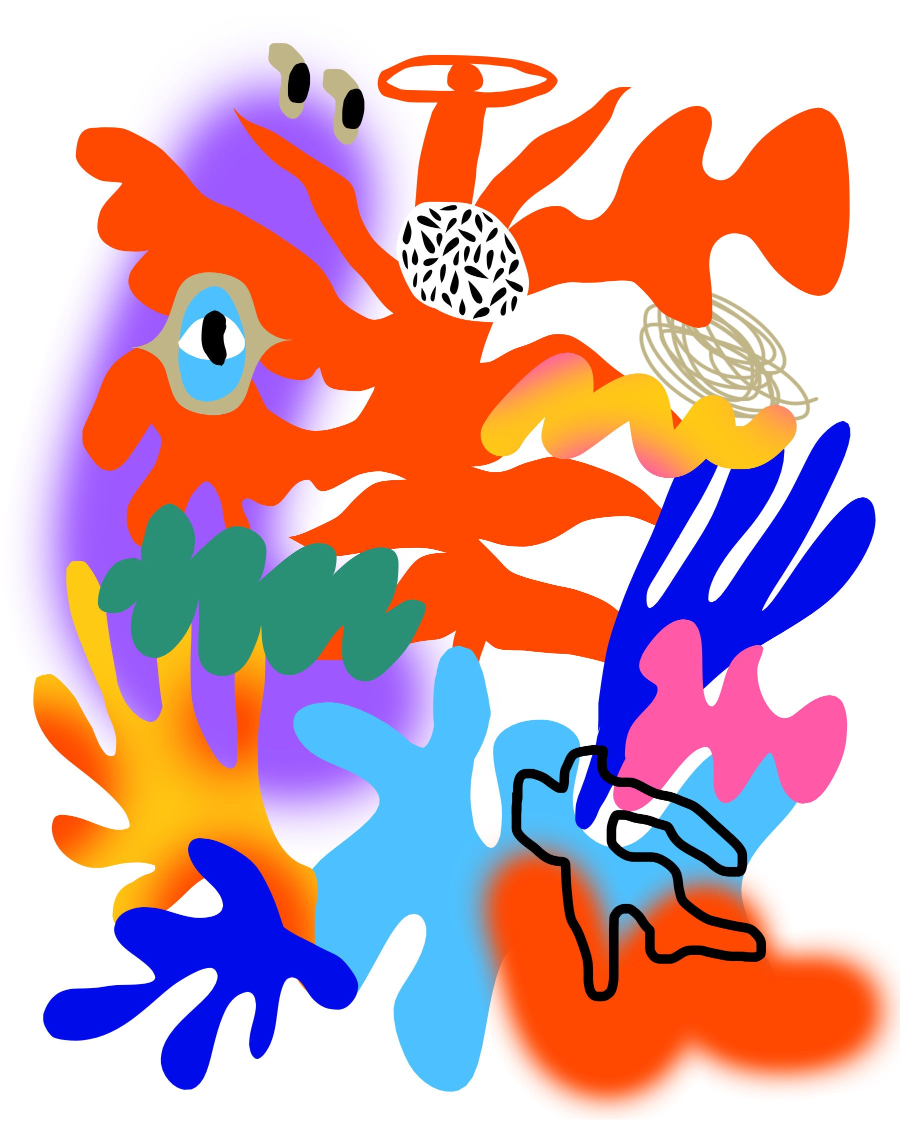 Experience the chaotic beauty of the universe's birth with Big Bang a vibrant and abstract wallpaper. This dynamic design explodes with a symphony of colors and shapes, mirroring the initial moments of creation. Fiery oranges and yellows clash and blend with cool blues and greens, evoking the immense energy released in the cosmic event. Abstract forms resembling celestial bodies and nascent galaxies swirl amidst the radiant backdrop, their outlines blurred, suggesting the rapid expansion of space-time. The unexpected juxtaposition of playful elements and bold strokes creates a sense of wonder and awe, capturing the raw, untamed power of the Big Bang. 'Big Bang' is more than just a wallpaper; it's a reminder of the incredible forces that shaped our universe, transformed into a visually stunning and thought-provoking piece of art.