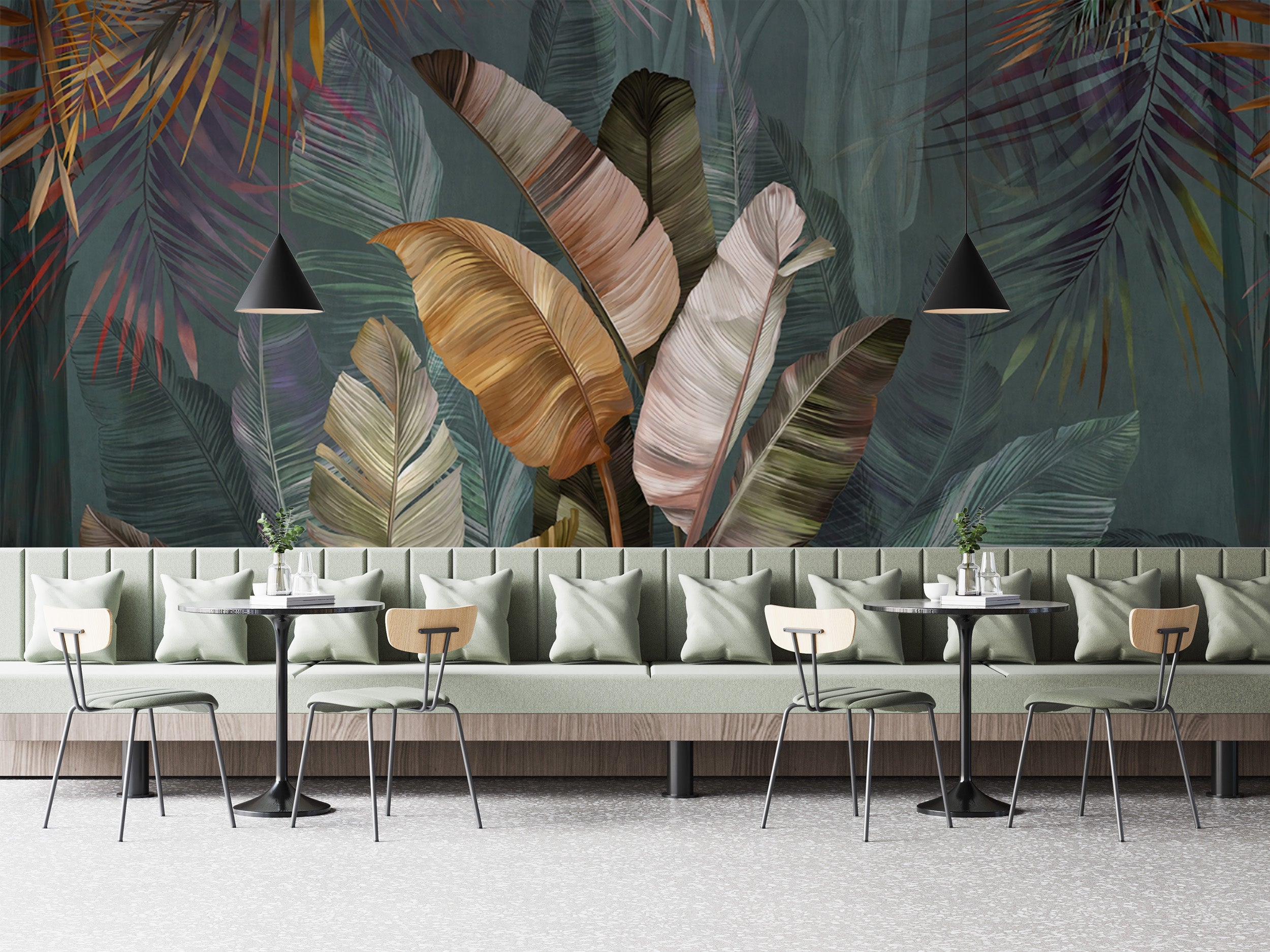 Experience the lush beauty of nature with our big tropical leaves living room mural wallpaper. This exquisite design features a vibrant array of tropical leaves, bringing a touch of the wilderness directly into your living room. Ideal for those who appreciate nature-inspired aesthetics, this banana leaves wallpaper for living room is a perfect blend of elegance and vitality. Dive into a world where greenery reigns supreme, and let the stunning details of each leaf elevate the ambience of your room. Choose our tropical leaves wallpaper to infuse your home with a serene and exotic charm.