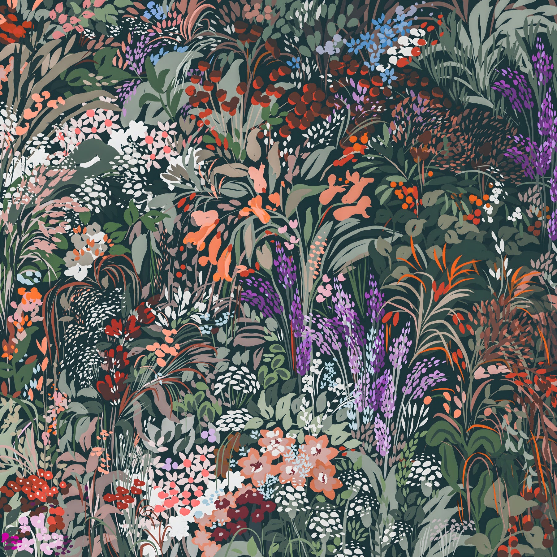 Immerse yourself in the vibrant tapestry of 'Biodiversity Canvas,' a wallpaper that celebrates the earth's rich flora. This design captures a dense and flourishing ecosystem, rendered in a painterly style that emphasises the beauty of nature's diversity. A deep, grounding backdrop sets the stage for an explosion of colour and form, with intricate flowers, lush foliage, and subtle botanical details intertwining to create a visually captivating scene.