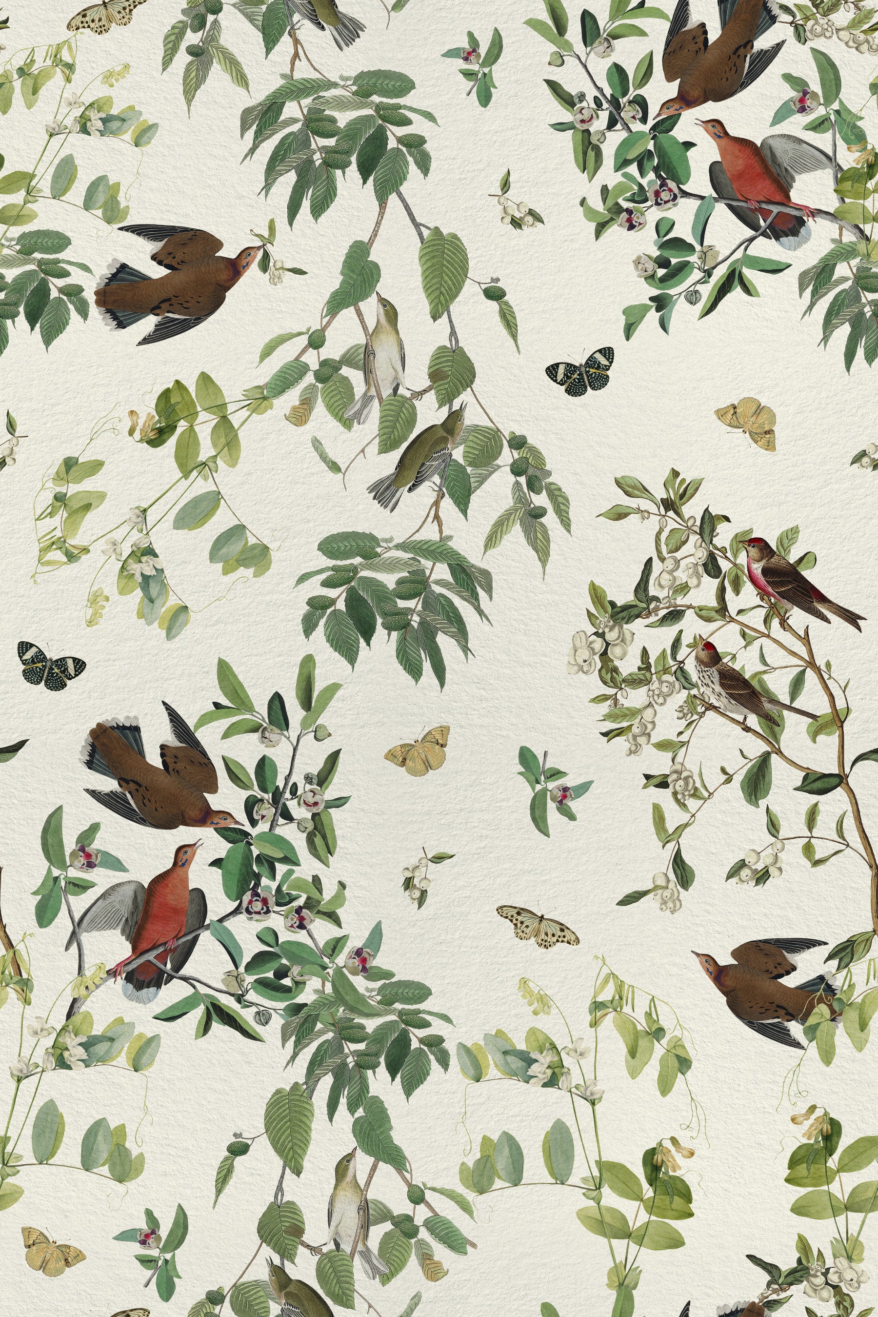 Bring the beauty of a secret garden into your home with this charming wallpaper for walls. The design features delicate branches adorned with birds and butterflies, creating a whimsical and peaceful atmosphere. The soft green and cream color palette evokes serenity. This wallpaper is perfect for bedrooms, nurseries, or any space where you want to create a calming and inviting sanctuary. Let this classic design transform your interiors with a touch of natural elegance.