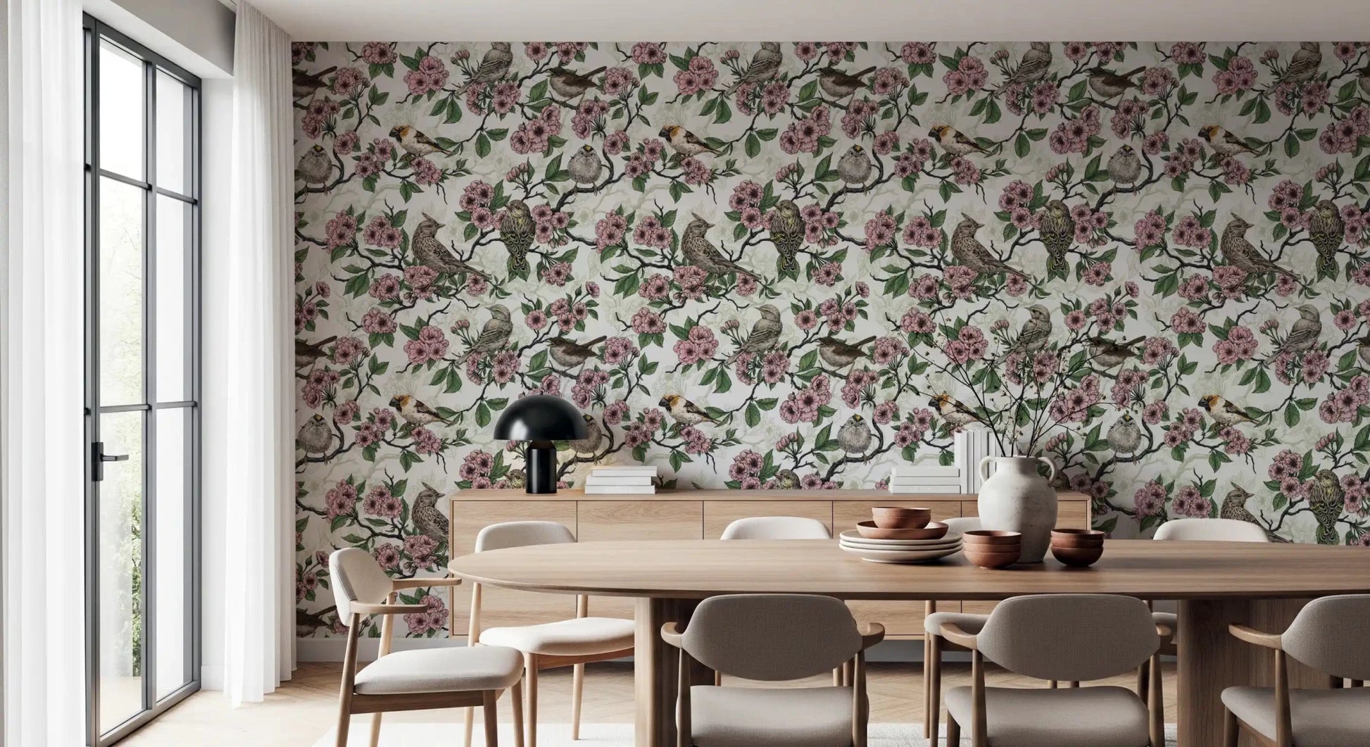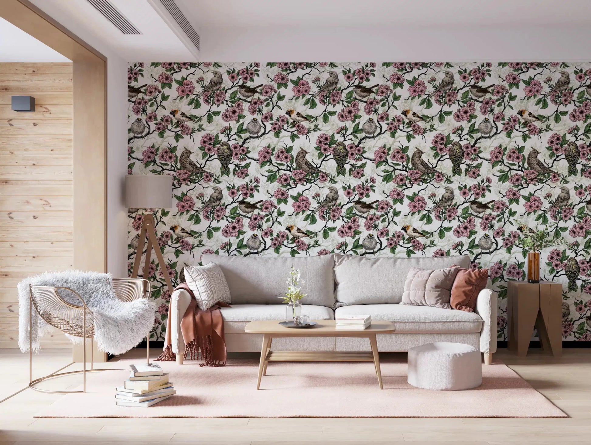 Birds and cherry blossom on white Wallpaper⁠