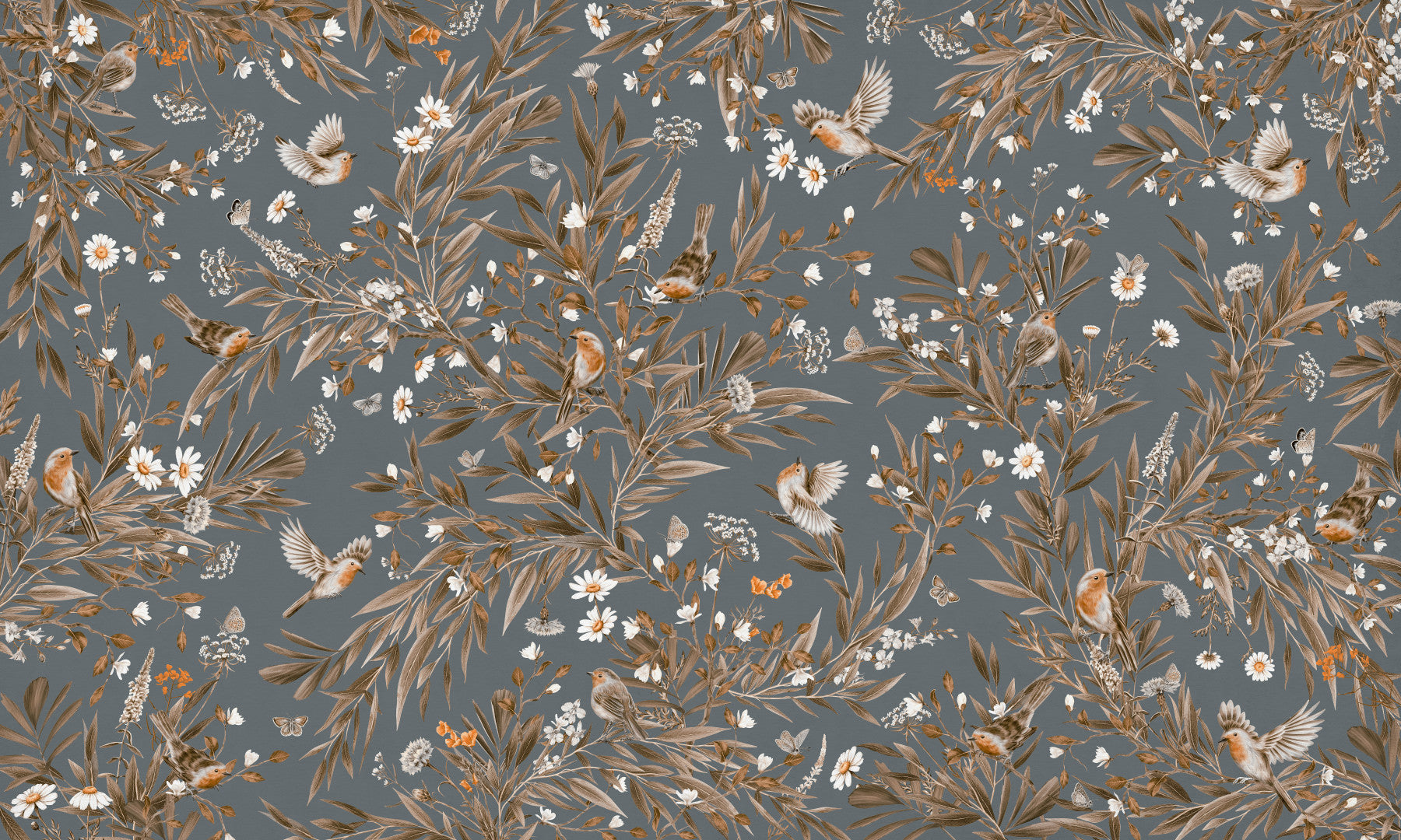 Invite nature indoors with this charming wallpaper for walls. It features delicate birds and flowers against a muted grey backdrop, creating a serene atmosphere. The design's soft hues and detailed illustrations make it ideal for living rooms, bedrooms, or hallways. The gentle pattern adds a touch of sophistication and complements various interior styles, from classic to modern farmhouse, offering a refreshing update.
