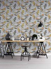 Bring a gentle melody of nature into your space with our Birds Golden and Gray Wallpaper. Delicate songbirds perch among graceful branches in warm golden hues and soft grays, creating a peaceful and timeless backdrop. Ideal for bedrooms, reading nooks, or garden-themed interiors, this wallpaper blends vintage charm with modern elegance. Printed on peel-and-stick material, it offers effortless application and removal—perfect for both homeowners and renters.