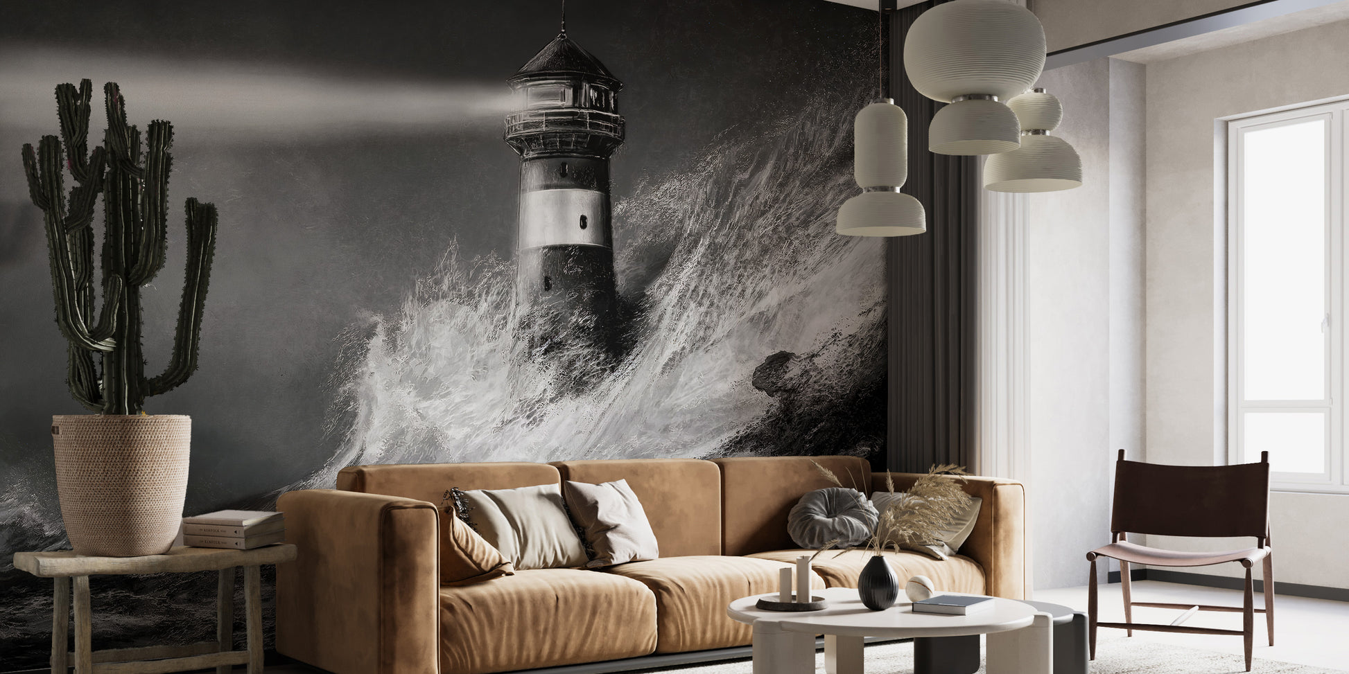 Peel and stick wallpaper featuring lighthouse in fierce waters